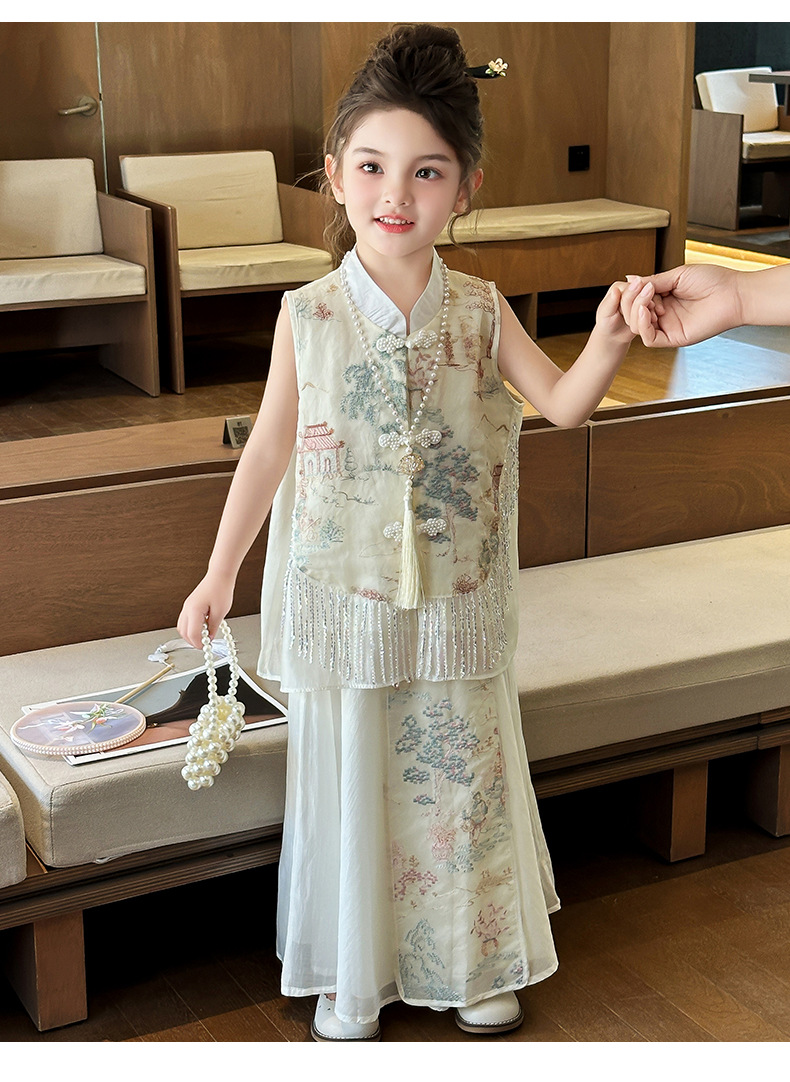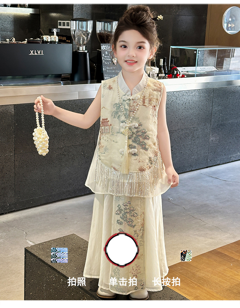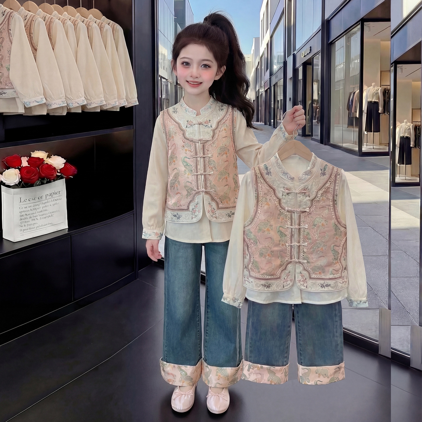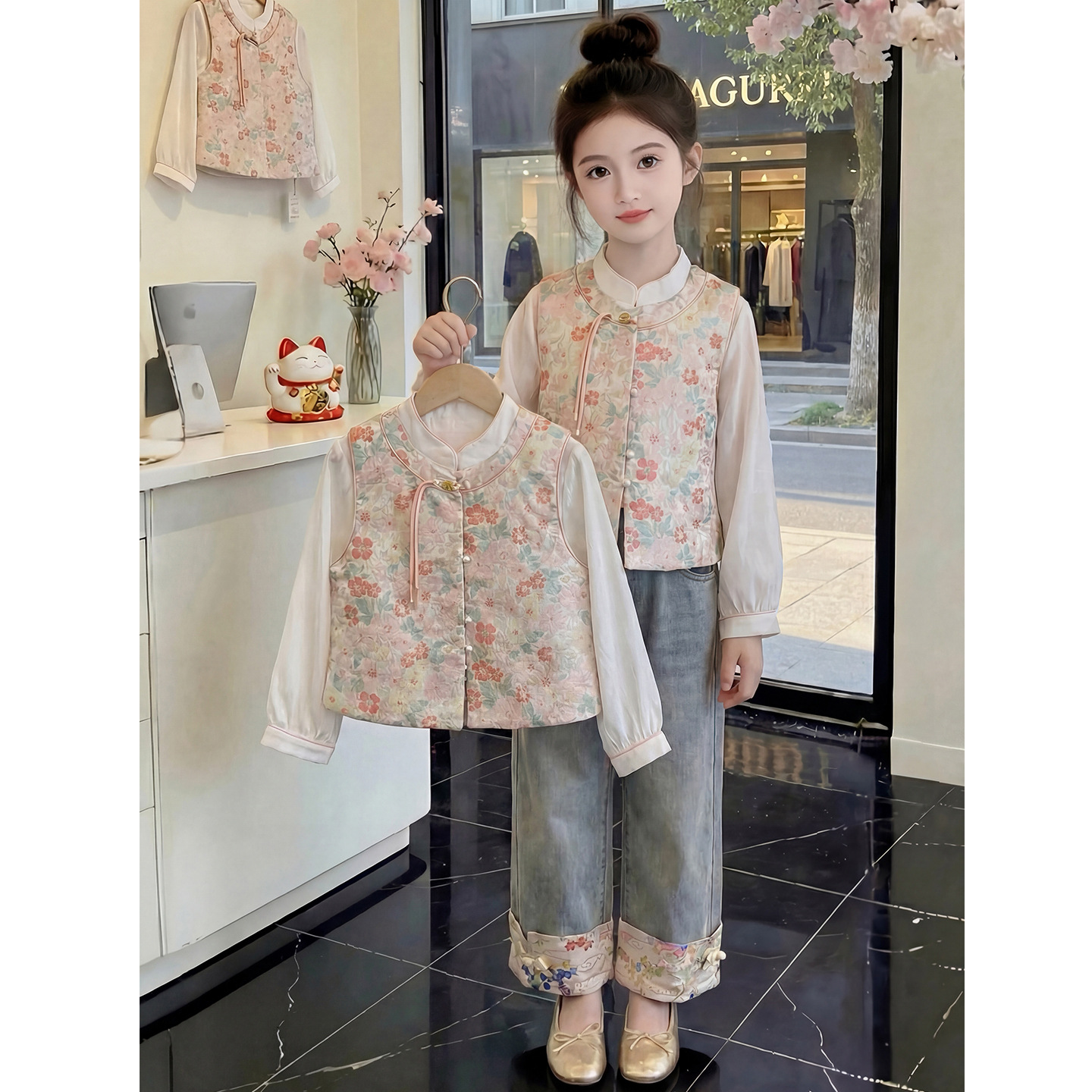 女童汉服春装2026新款儿童洋气国风中式爆款马甲女孩春秋款三件套