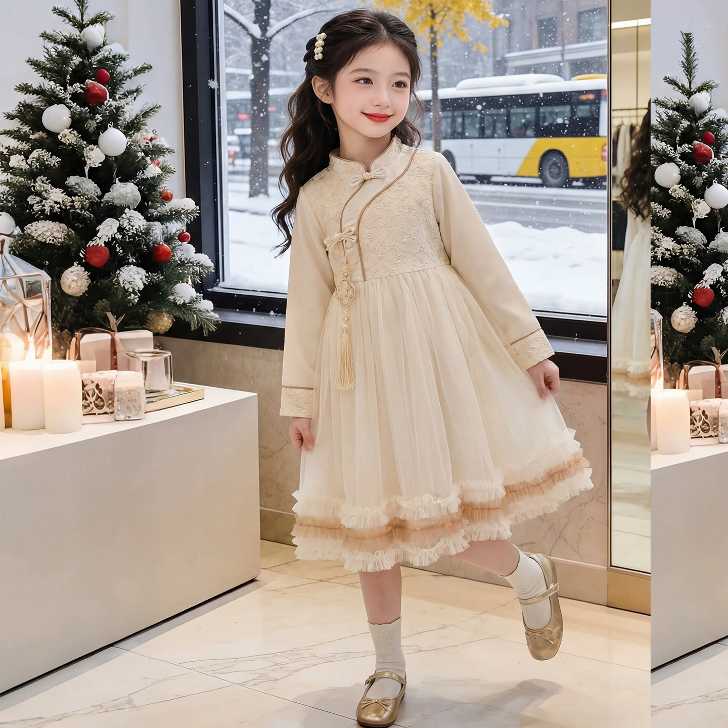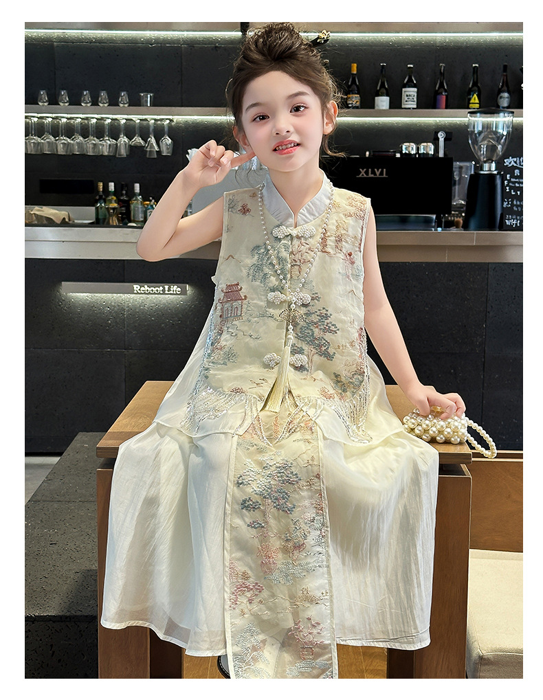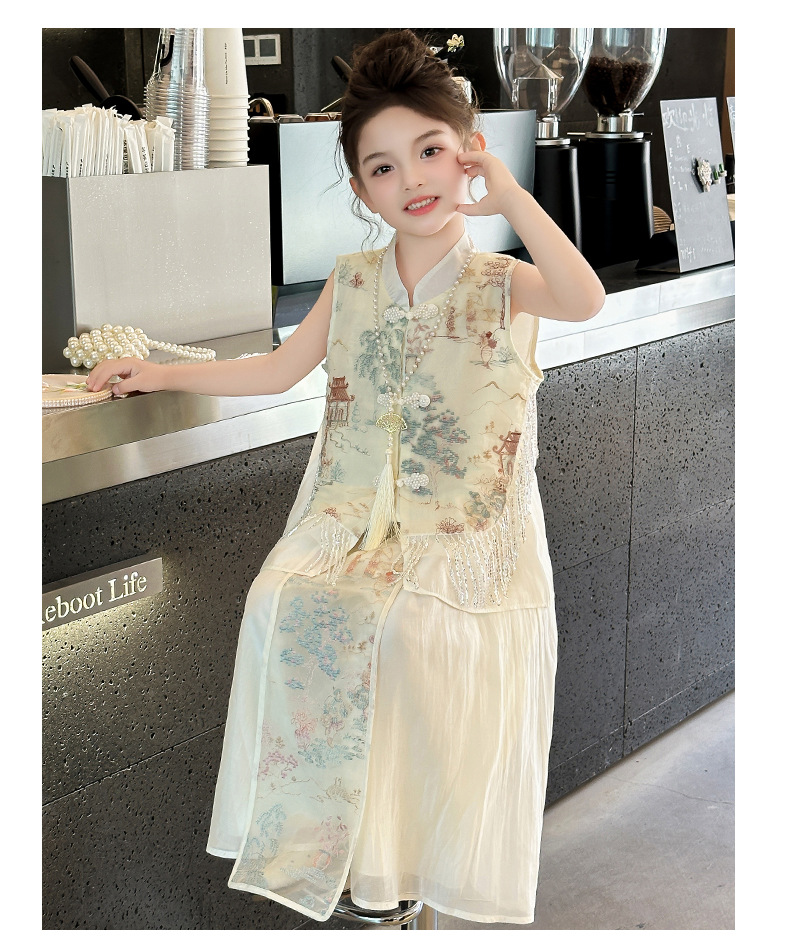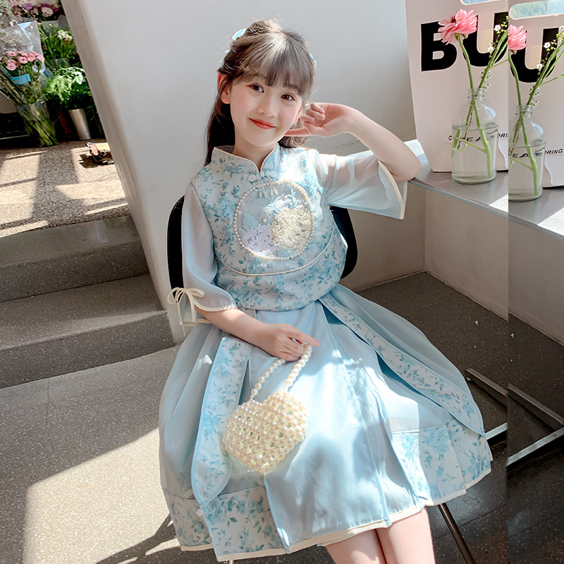 女の子のチャイナドレス 2025 新しい夏服子供の漢服西洋スタイル中国風スカート夏の女の子のプリンセスドレス