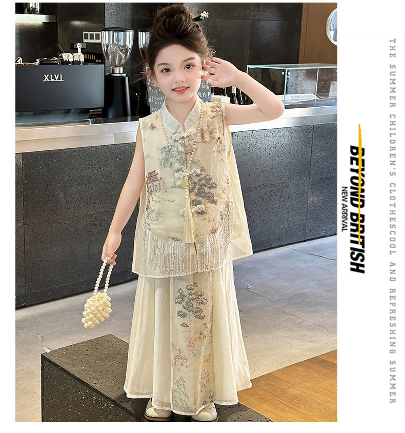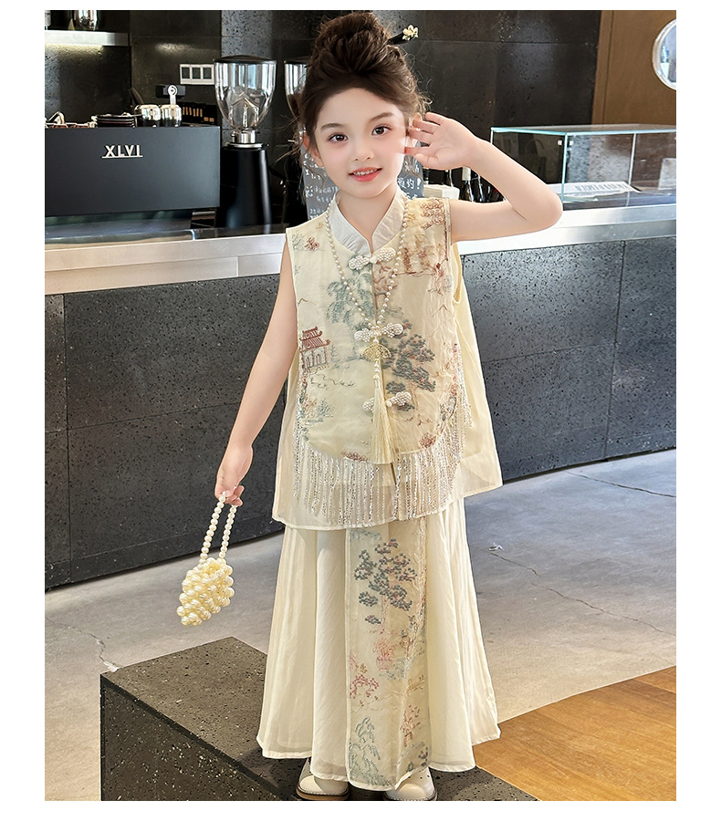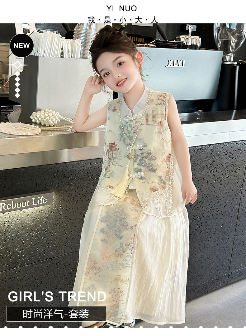 女の子夏服セット2026新作子供用ネットセレブ風エスニック風スカートツーピースセット女の子服