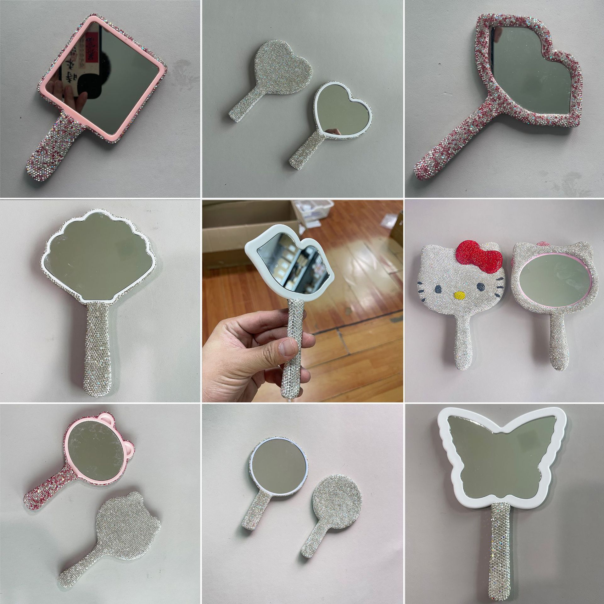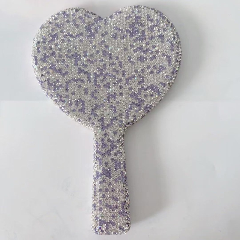 卸売り高精細水晶ハンドル鏡ins創意的にハート型円形化粧鏡携帯片面美容鏡
