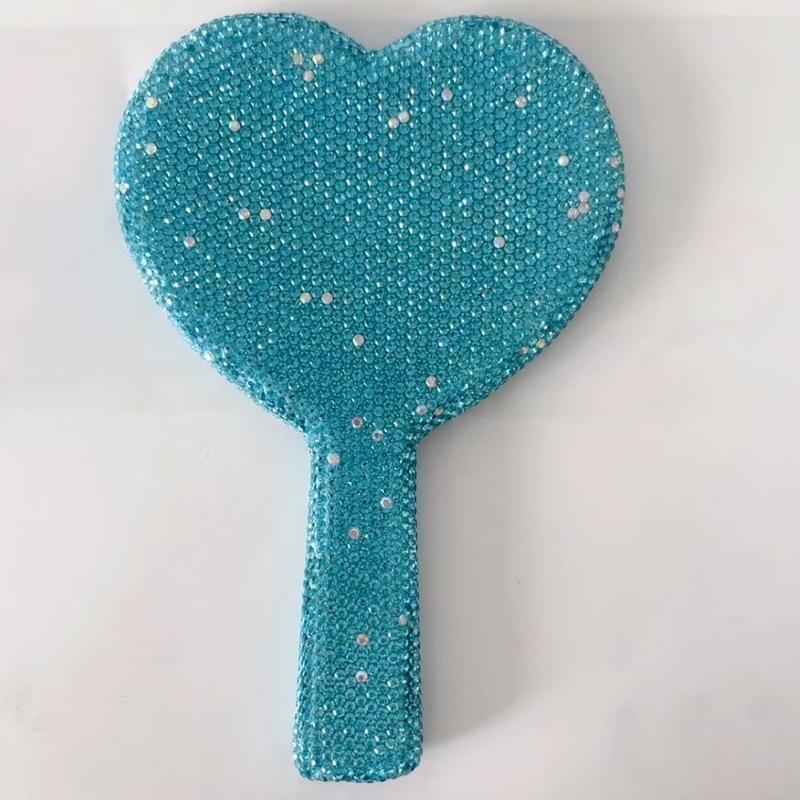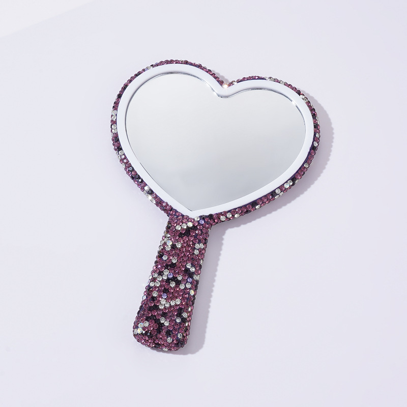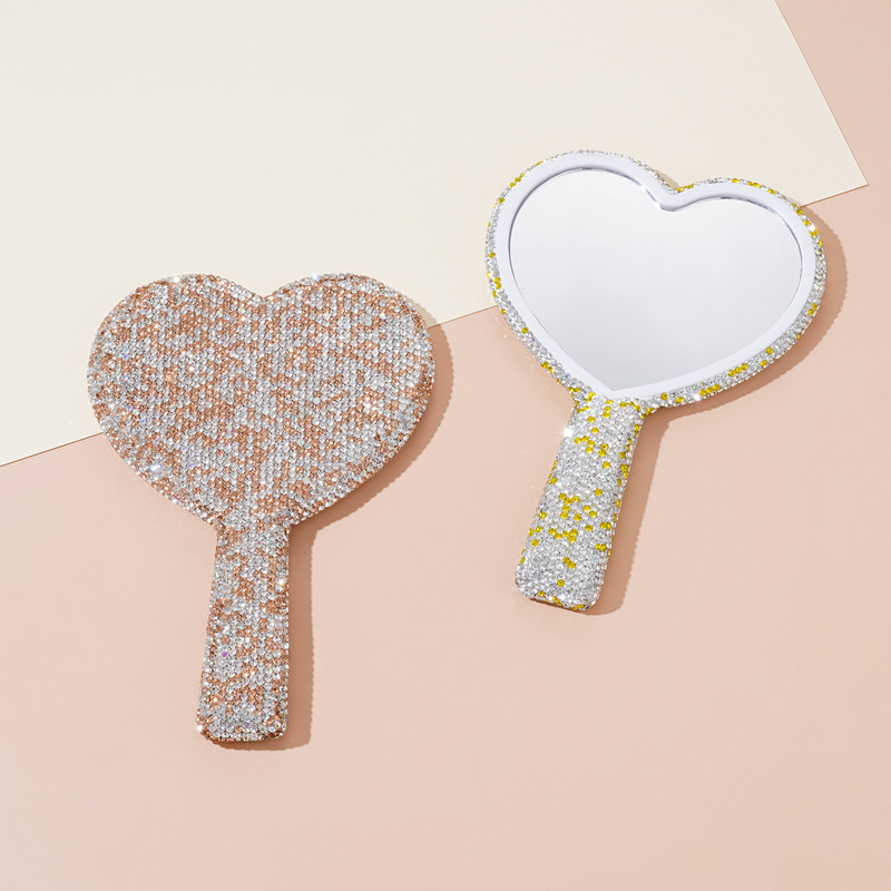 クロスボーダーダイヤモンドハンドヘルド化粧鏡、ポータブルでかわいいハンドルタイプのハンドヘルド小型ミラー、持ち運び可能、インターネットセレブのハート型