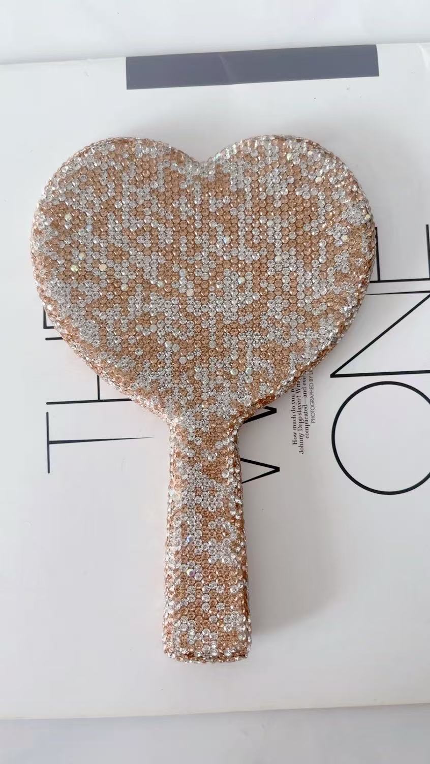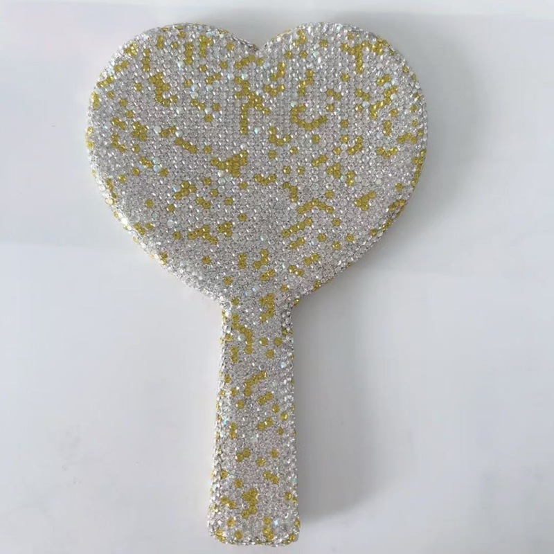 手持镜子高颜值法式轻奢镶钻心形手持镜跨境外贸厂家直销批发