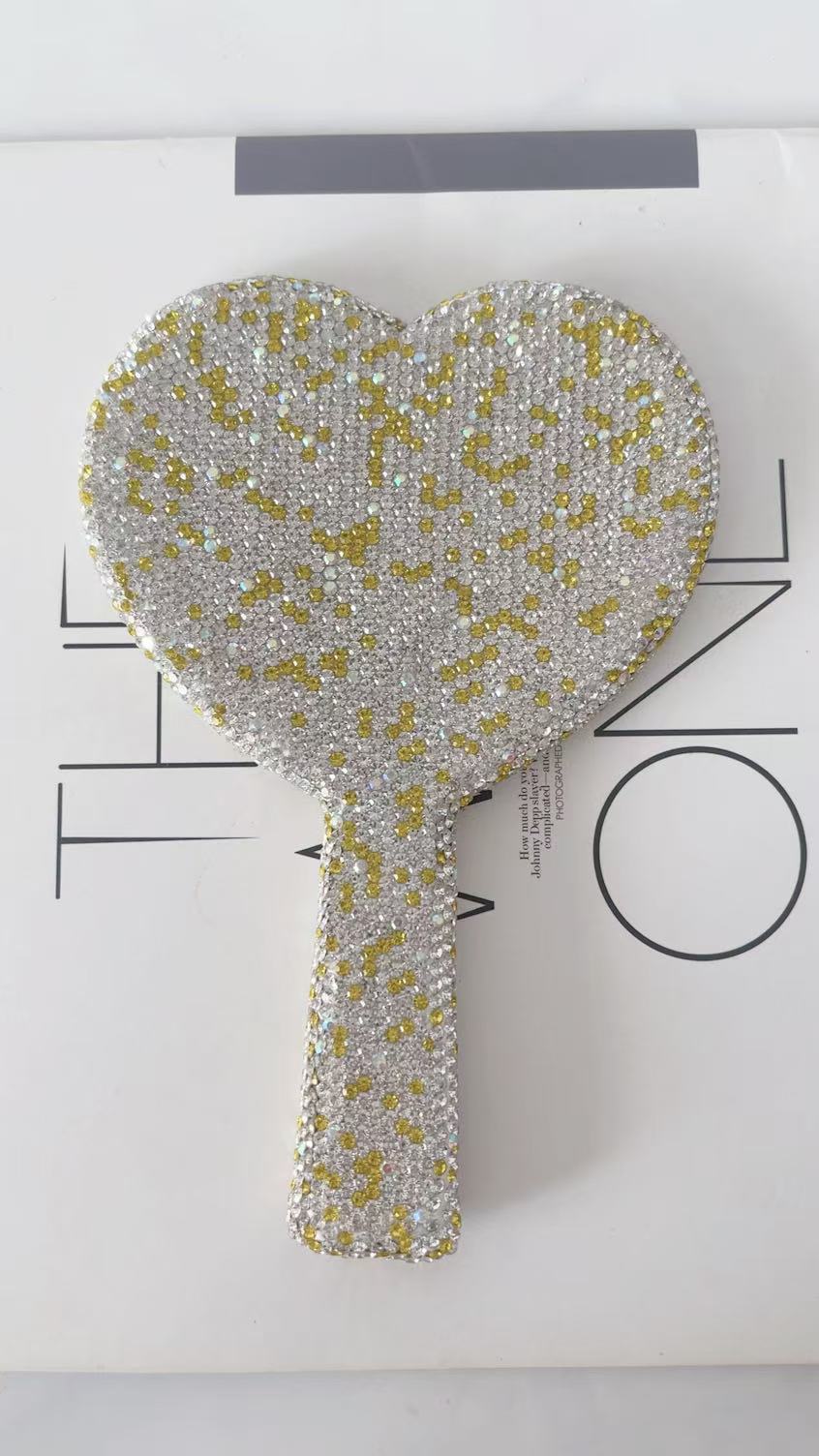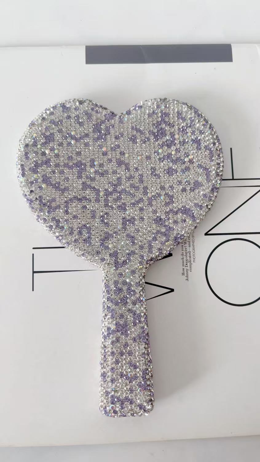 亚马逊TUME热款镜子手持镜 ABS 时尚高档美容陶泥镶钻手柄镜跨境