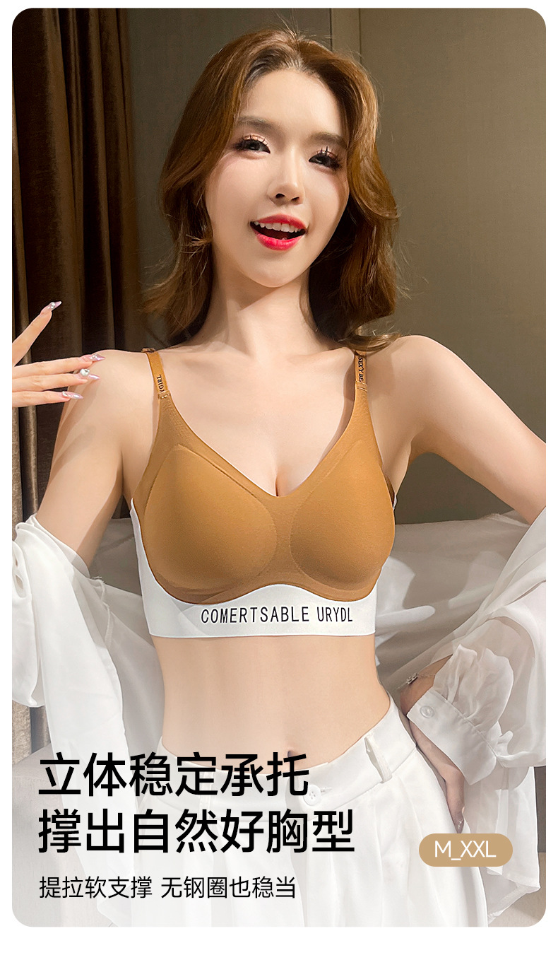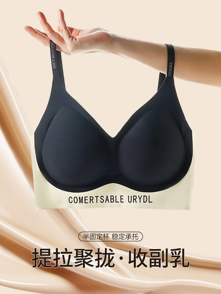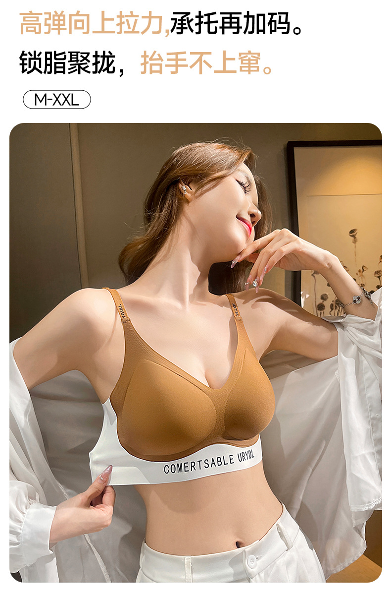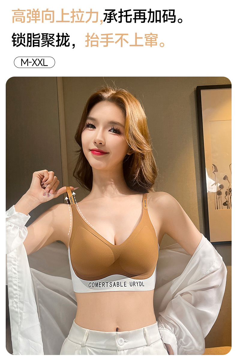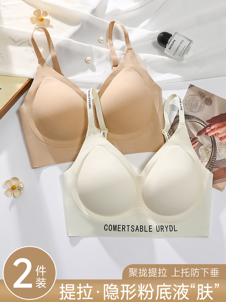 双皮奶软提拉无痕内衣套装聚拢上托防震运动收副乳无钢圈内衣薄款