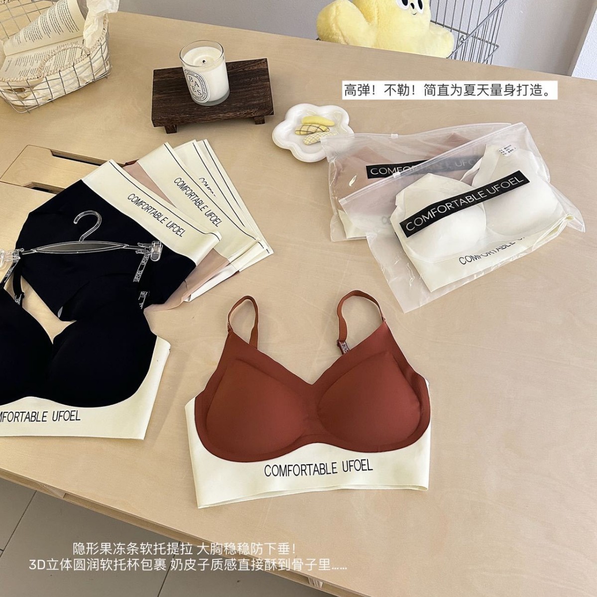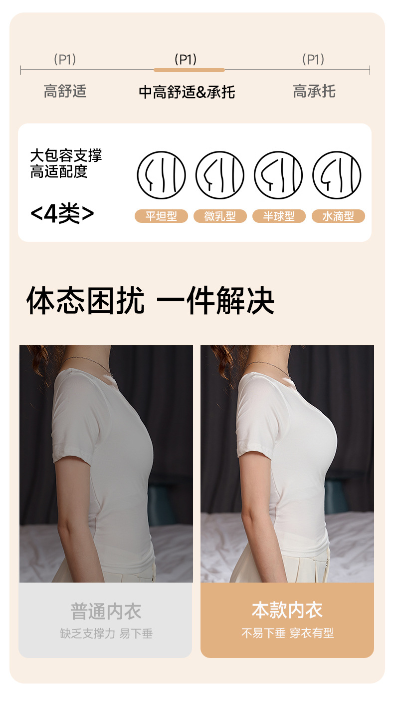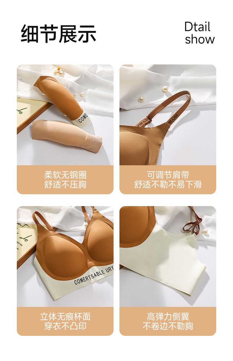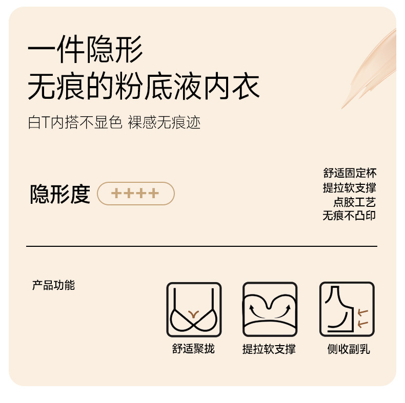 撞色奶皮套装夏季无痕裸感超薄隐形粉底液内衣女固定杯高弹舒适透