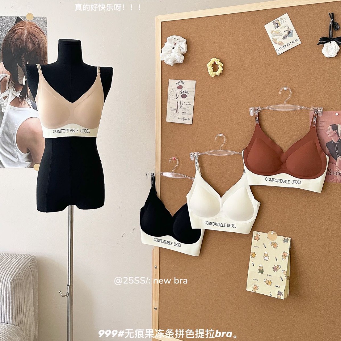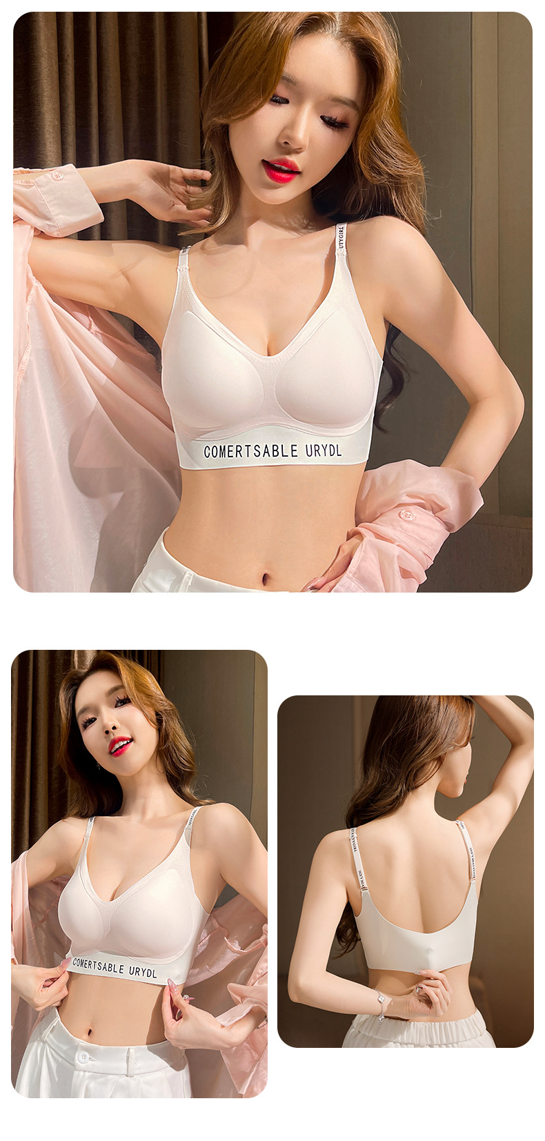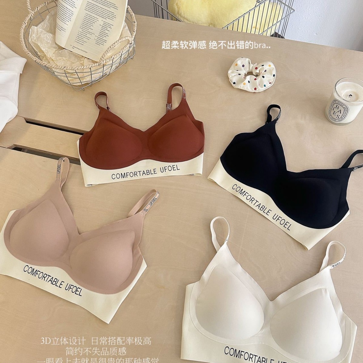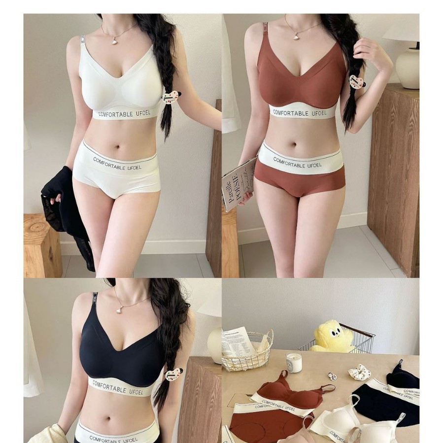 撞色奶皮套装夏季无痕裸感超薄隐形粉底液内衣女固定杯高弹舒适透