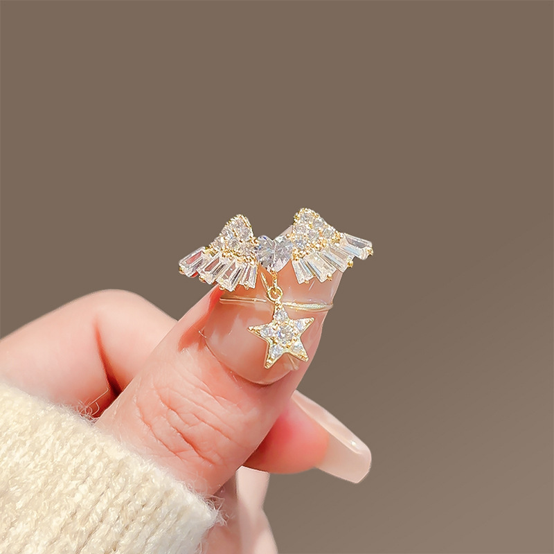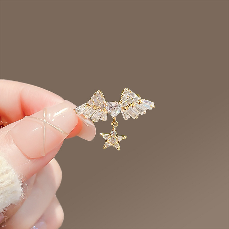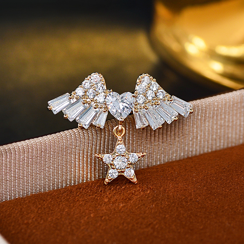 小さくて絶妙なマイクロ象嵌ジルコニウム天使の羽ブローチ、ハイエンドの多用途スターペンダントコサージュ、ハイエンドのシンプルなブローチ