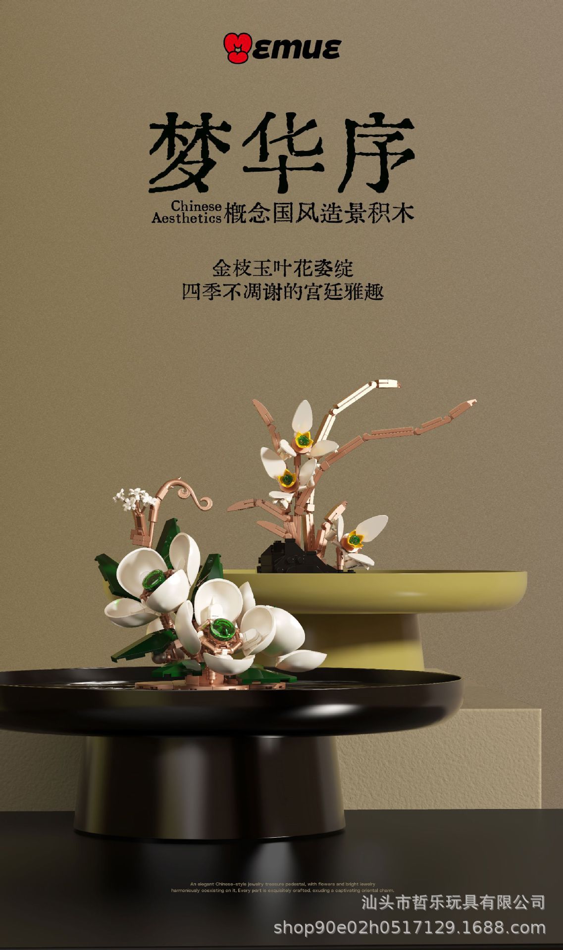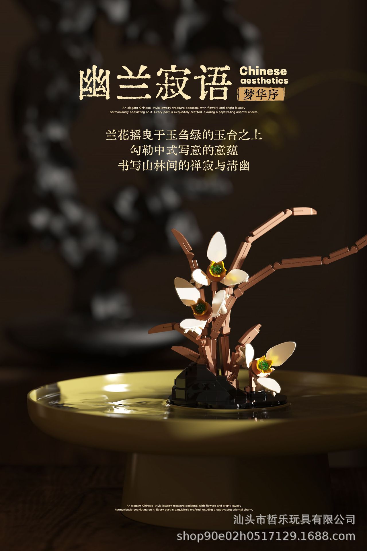 レゴブロック、中国の古代スタイルの小さな花壇の建物、新しい中国風の組み立てられた装飾品、教育玩具、国境を越えた卸売と互換性があります。