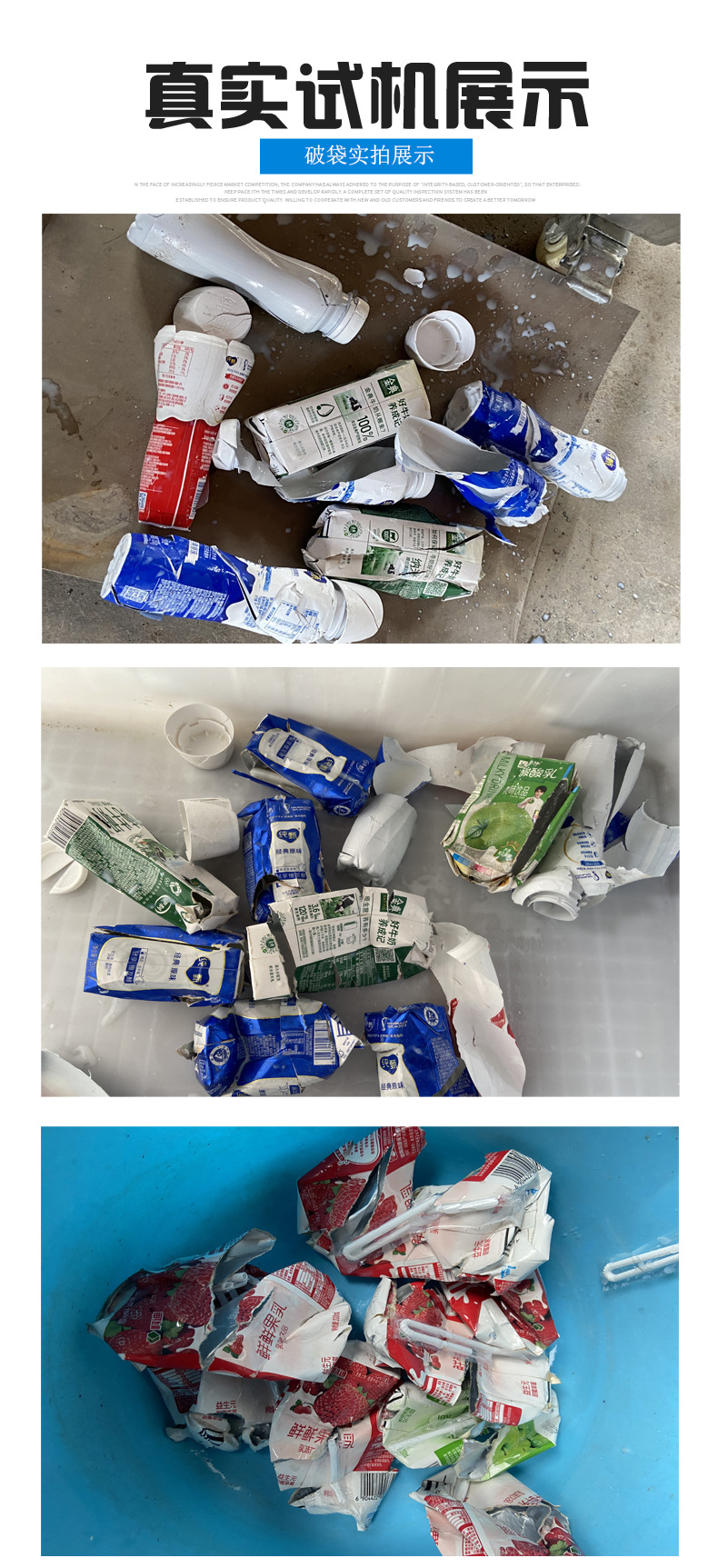 期限切れの牛乳処理装置、期限切れの牛乳の箱開け機、液体軟包装袋開け機、牛乳箱破砕機