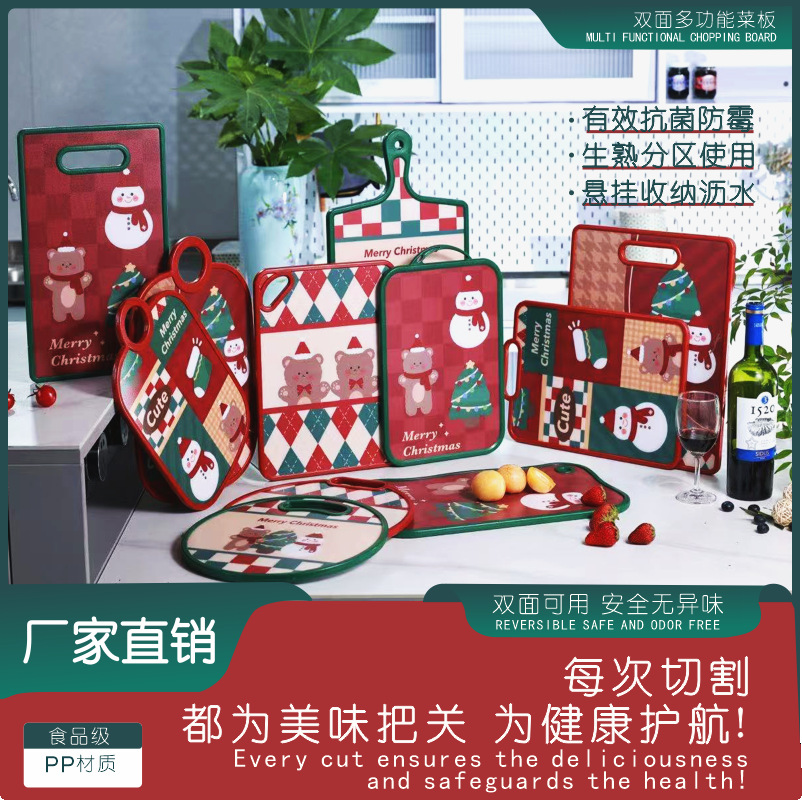 ホームキッチンPPプラスチックまな板厚みのある滑り止めまな板両面利用可能なクリスマスシリーズ食品グレードまな板