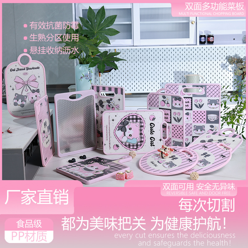 食品グレードのPPプラスチックまな板家庭用防カビ、抗菌、滑り止めまな板ピンク猫柄キッチンまな板