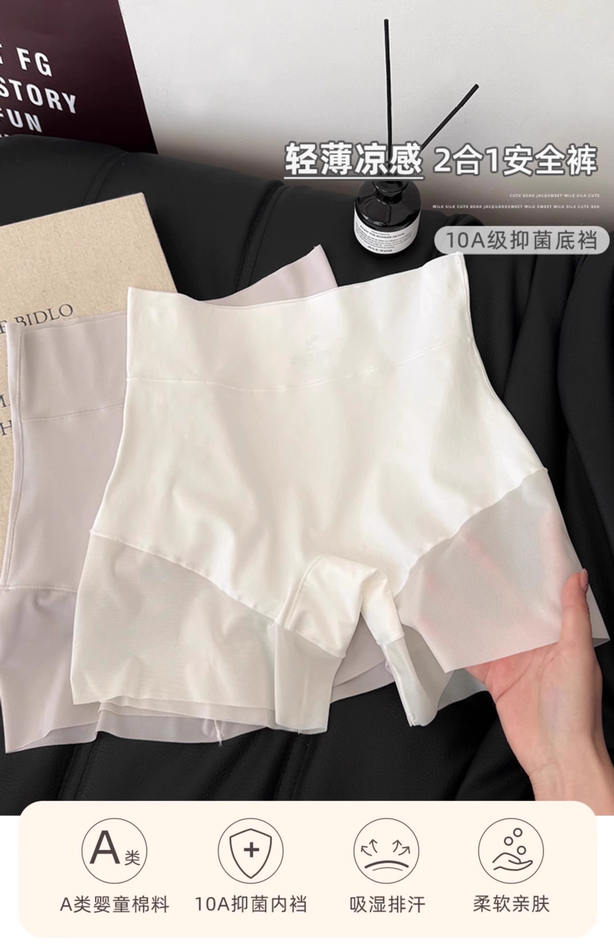 ツーインワン安全ショーツ夏 2025 薄型露出防止ハイウエストおなかコントロールシームレス下着女性のアイスシルク通気性女性