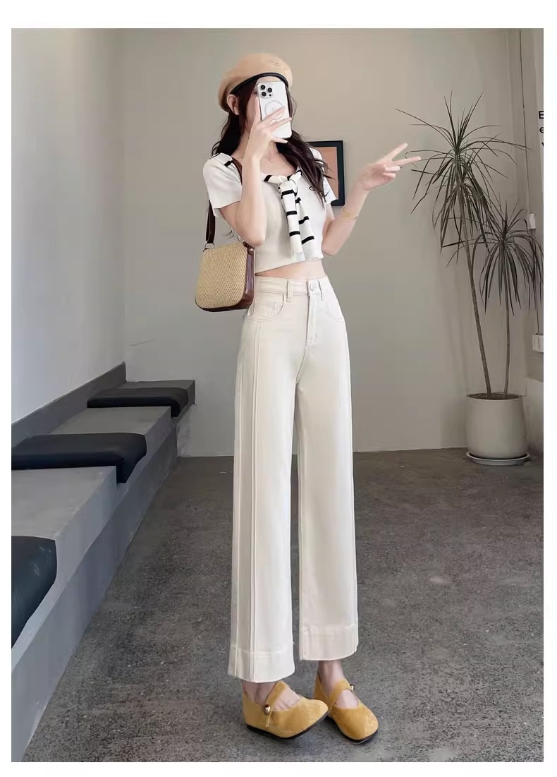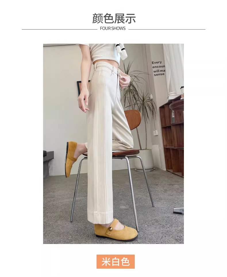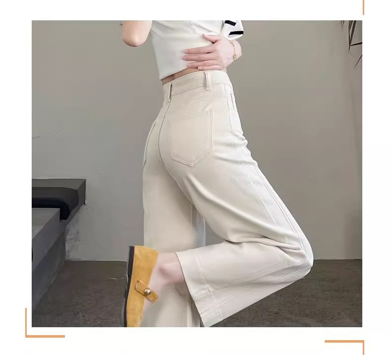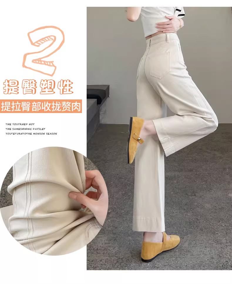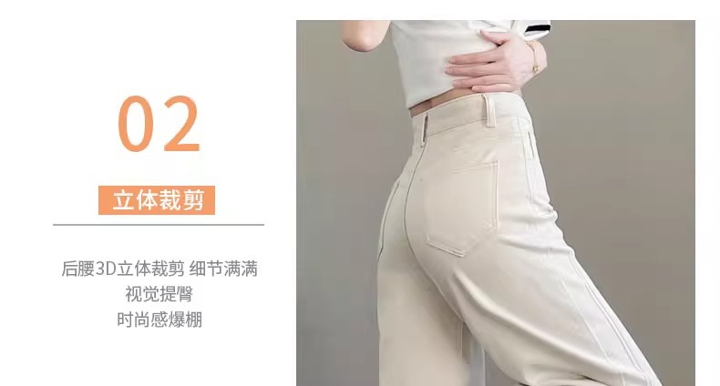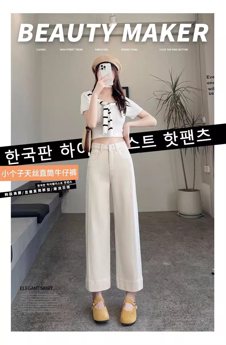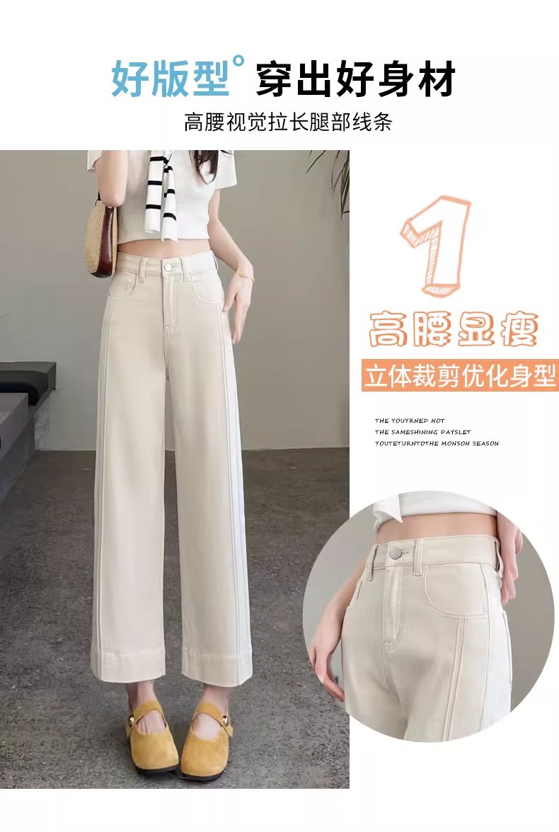 ホワイトテンセルワイドレッグソフトジーンズ女性のための 2025 夏小弾性ステッチアイスシルクおばあちゃんストレートパンツ