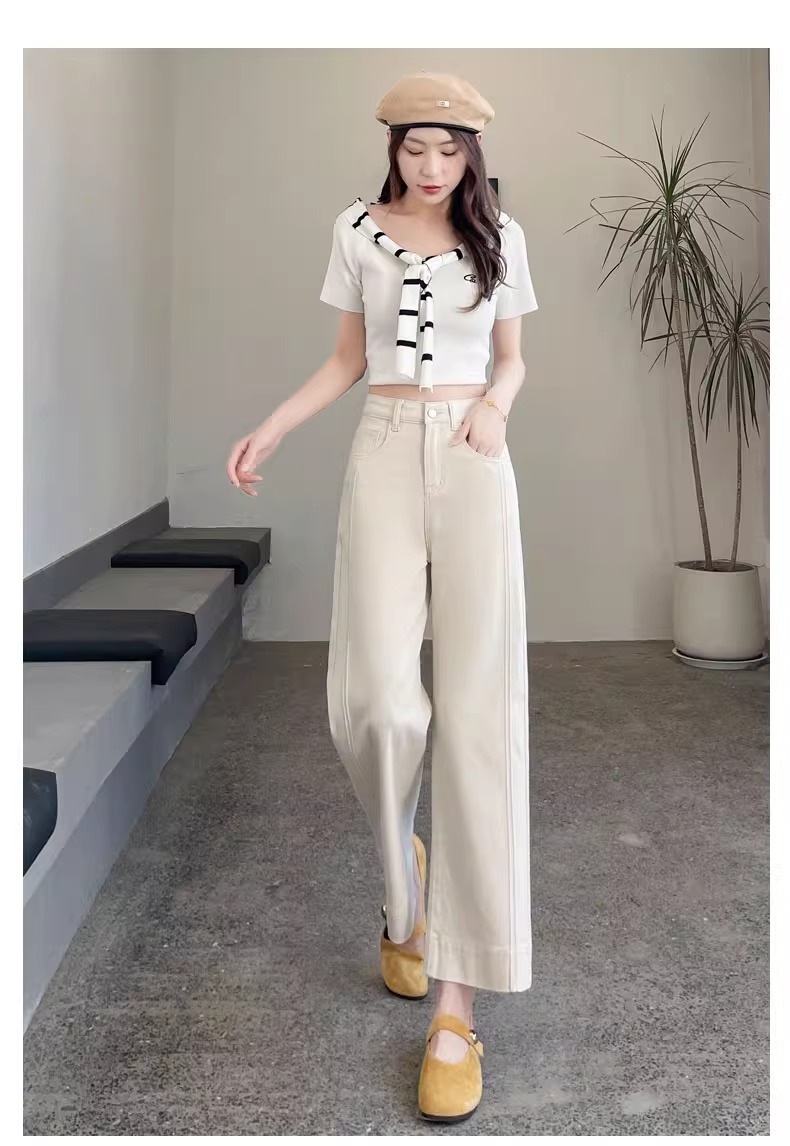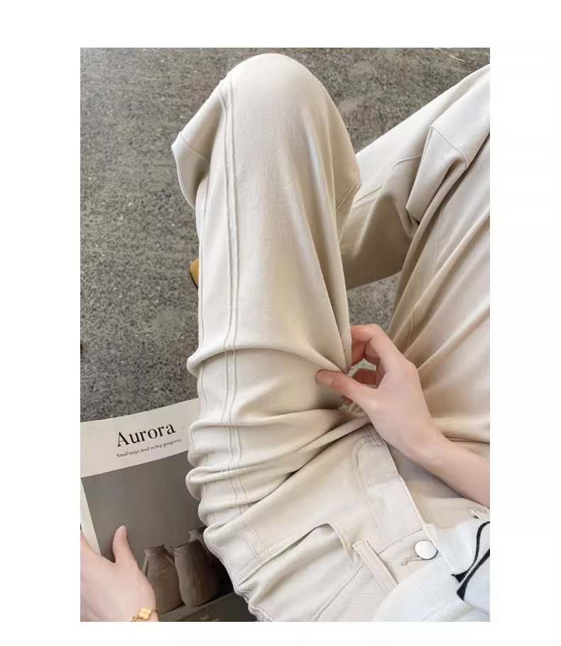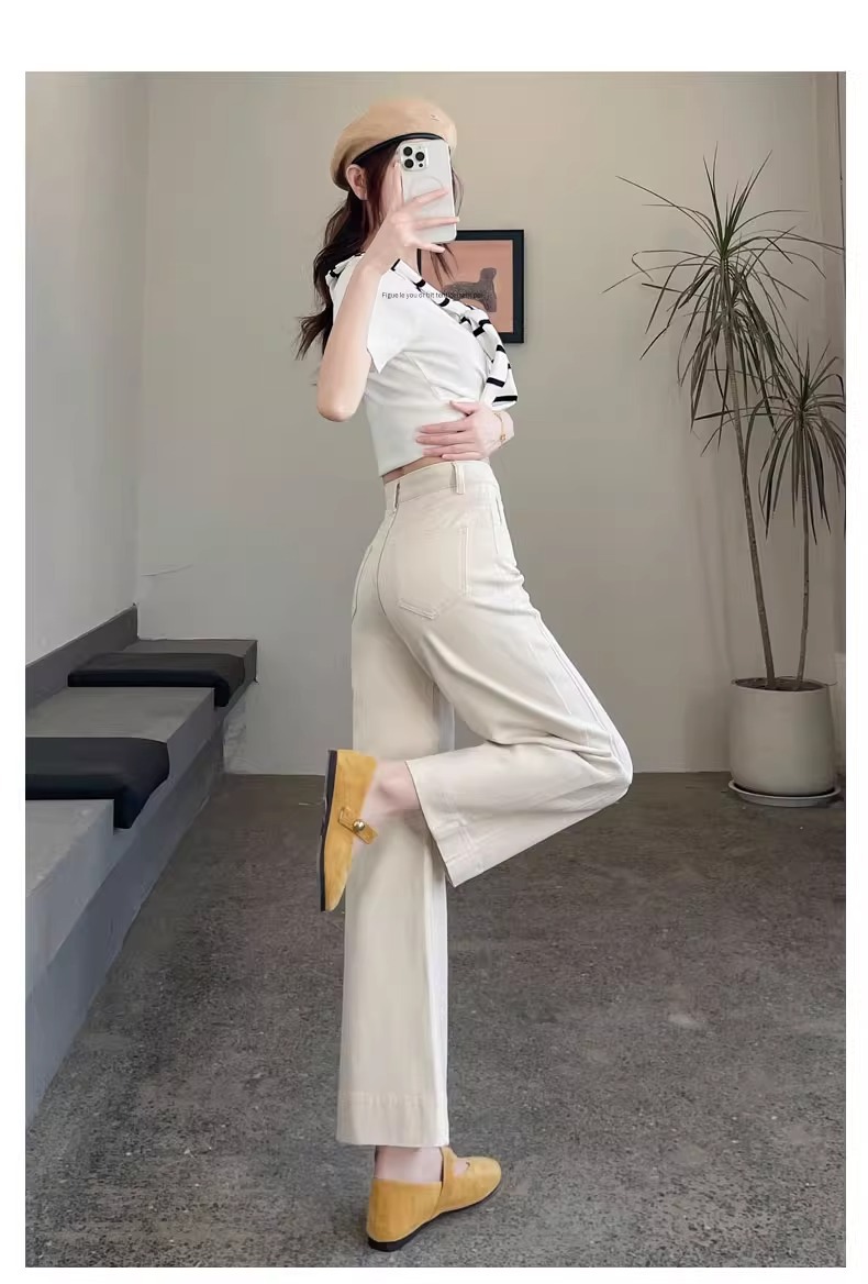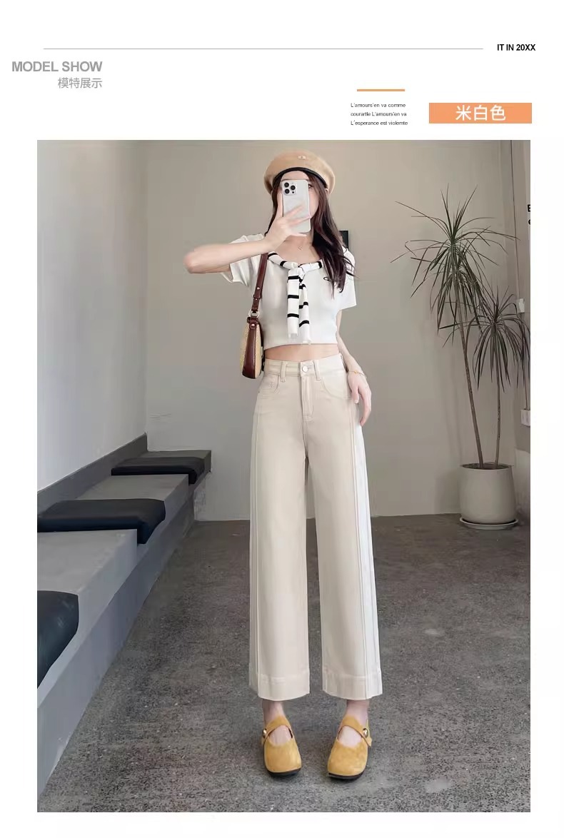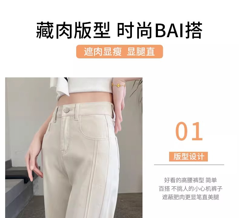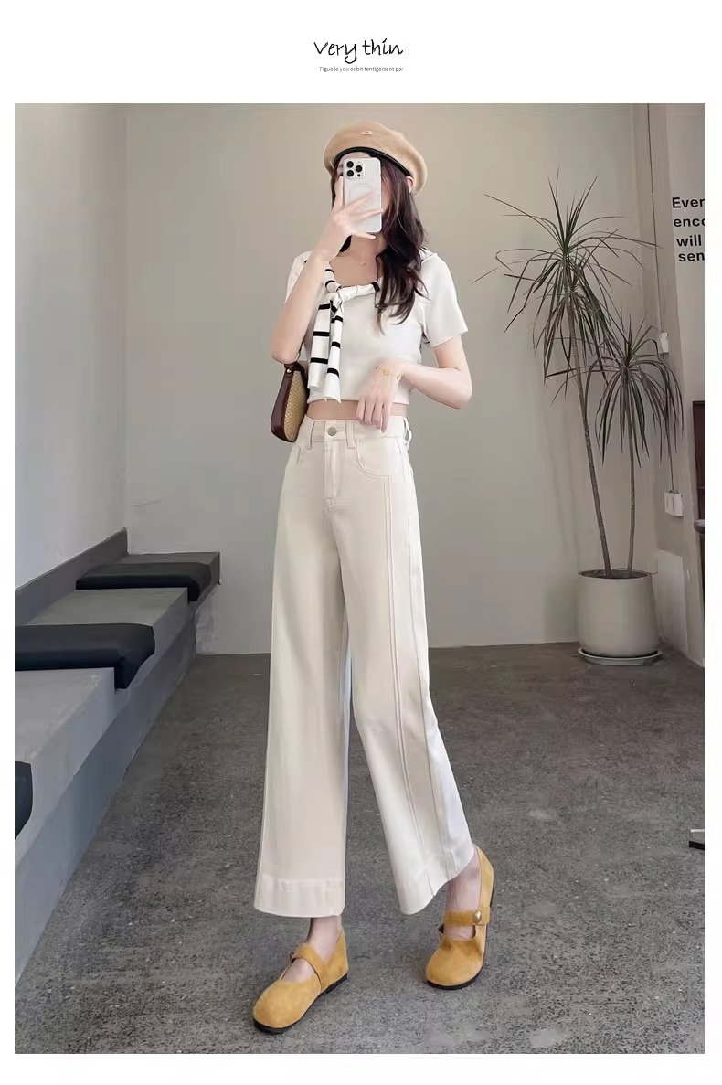 ホワイトテンセルワイドレッグソフトジーンズ女性のための 2025 夏小弾性ステッチアイスシルクおばあちゃんストレートパンツ