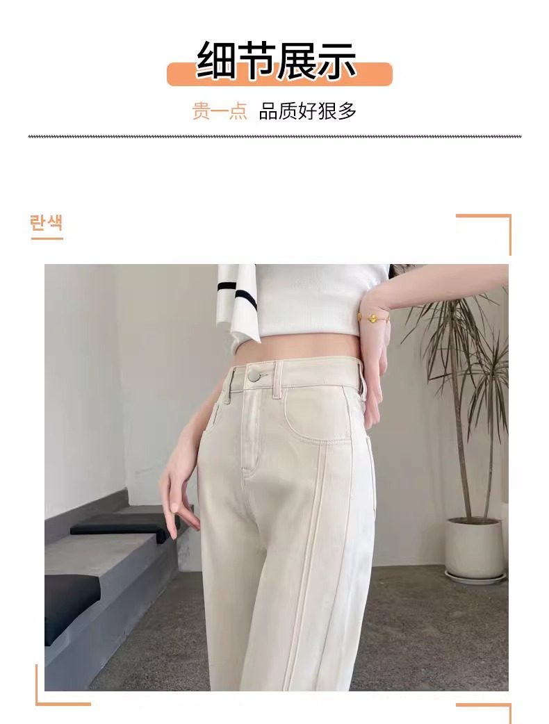ゆったりとした広脚のラッパのジーパンの女性2025の新型の春の服の双ボタンの高い腰の立体は小さい背の小さいレギンスをつなぎ合わせます。