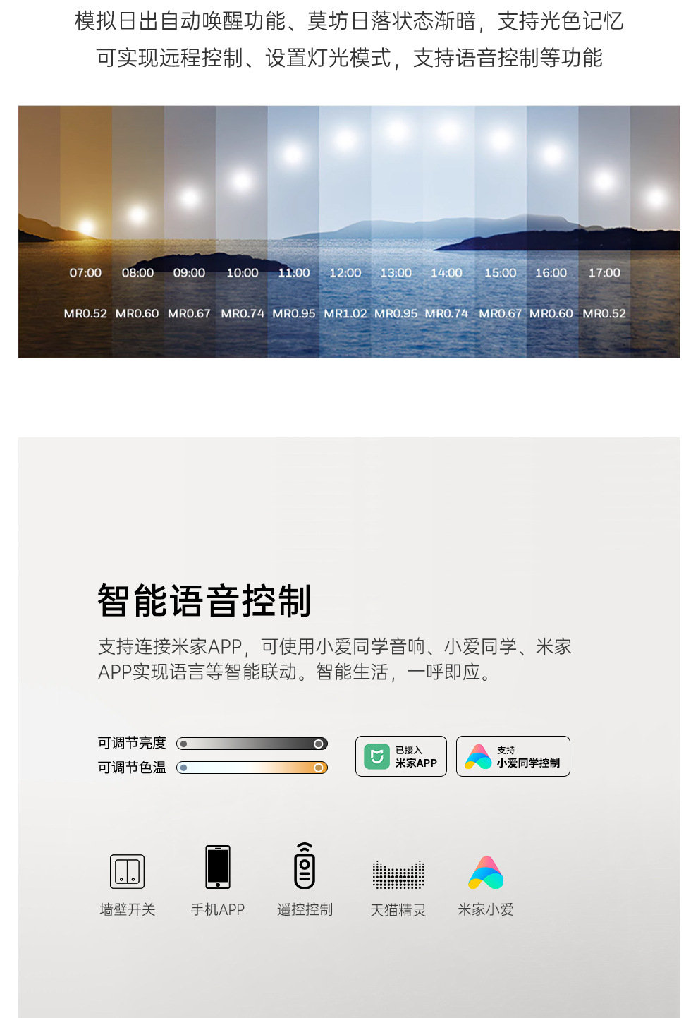 ライトの色 3色の調光,WUJI Tmall,Xiaoaiクラスメイトの制御をサポート