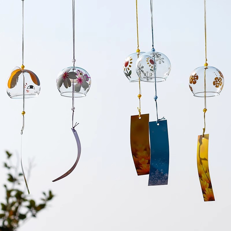 日本の透明なガラス風鈴吊り下げ装飾 diy 手作り材料パッケージ屋外バルコニーカスタム幼稚園手描きの鐘