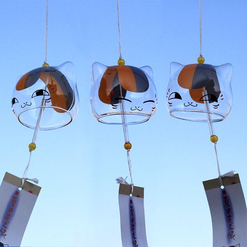 夏の友人帳アニメ日本式プレゼントガラスと和風飾り車飾り猫先生風鈴明斜