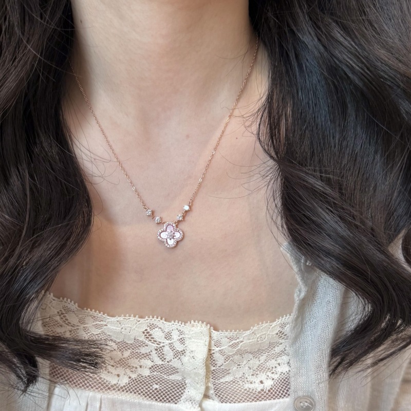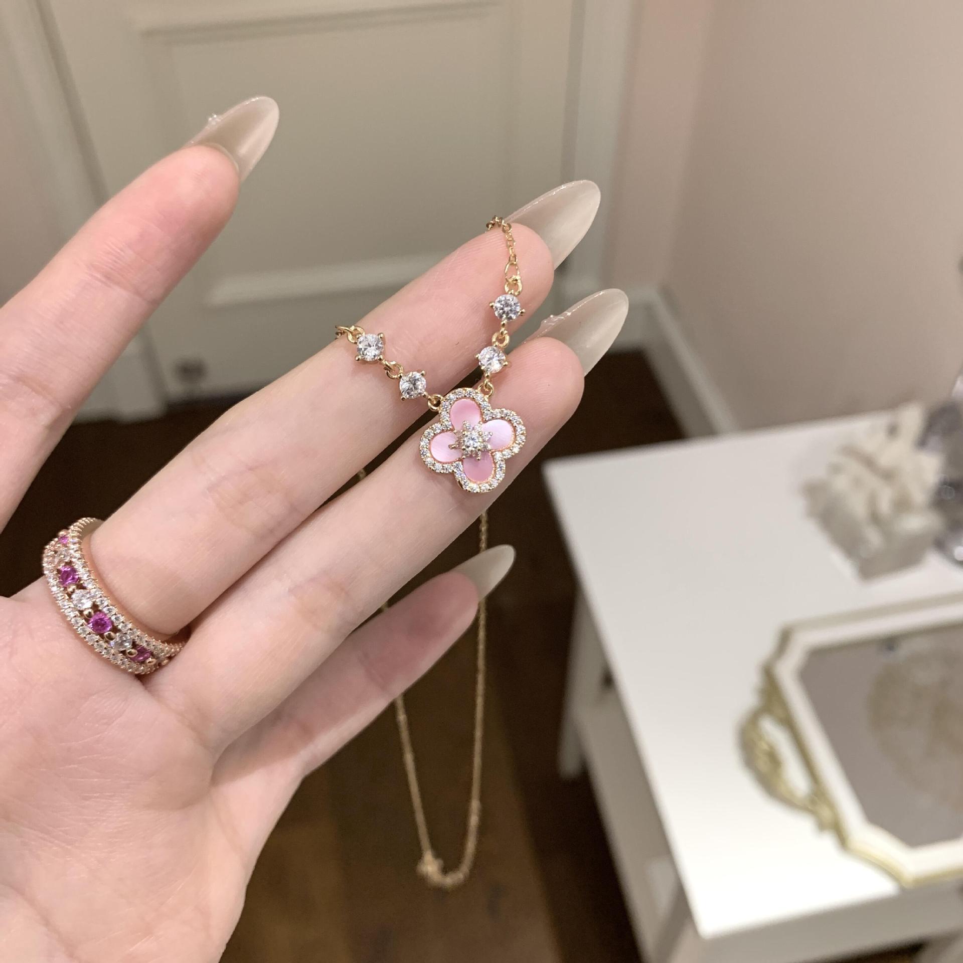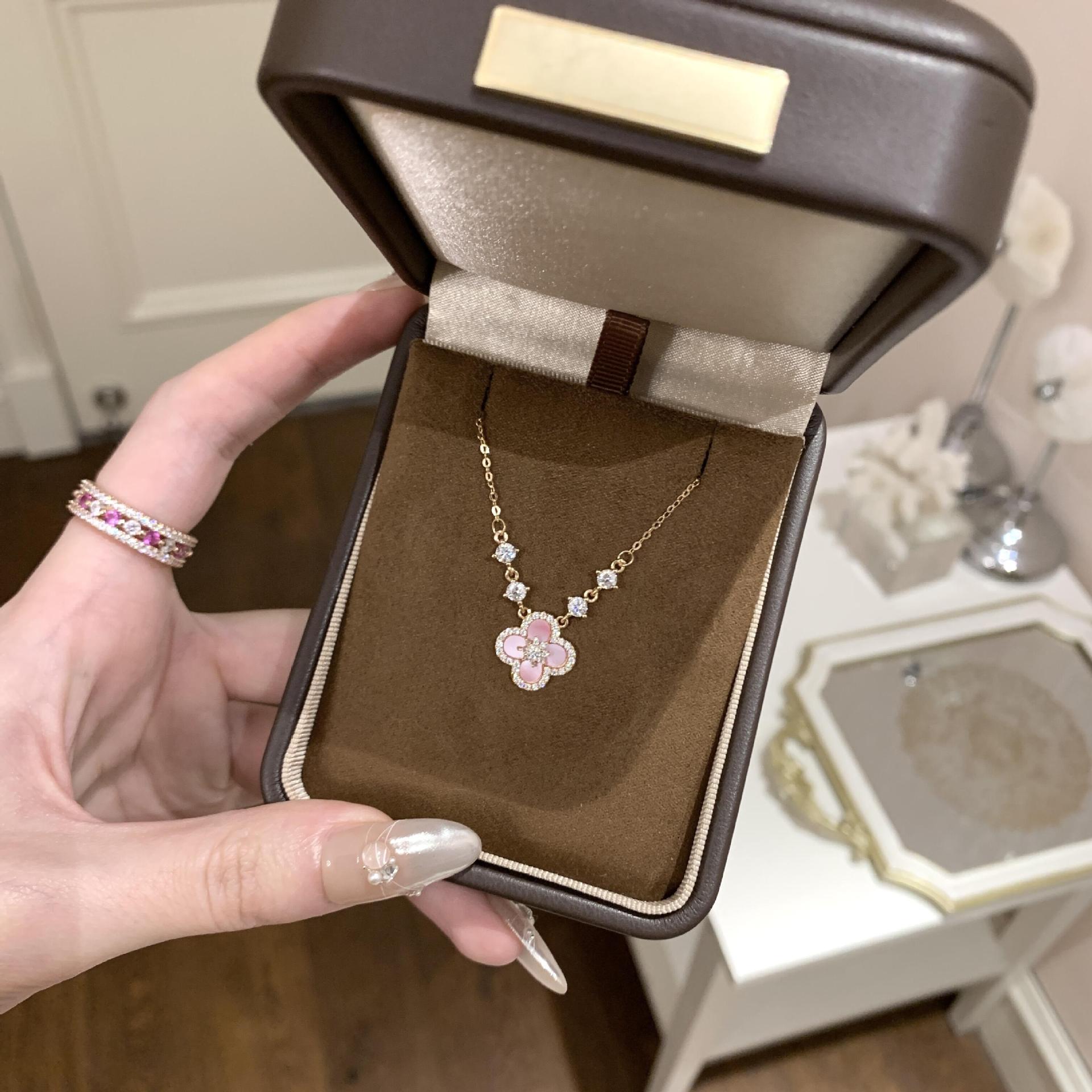 「绮梦甜樱」中古风樱花粉贝母四叶草项链女轻奢气质高级感锁骨链
