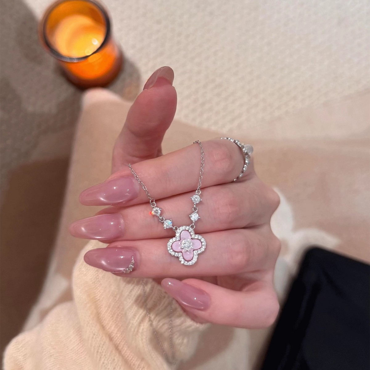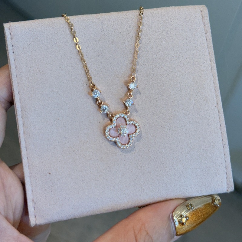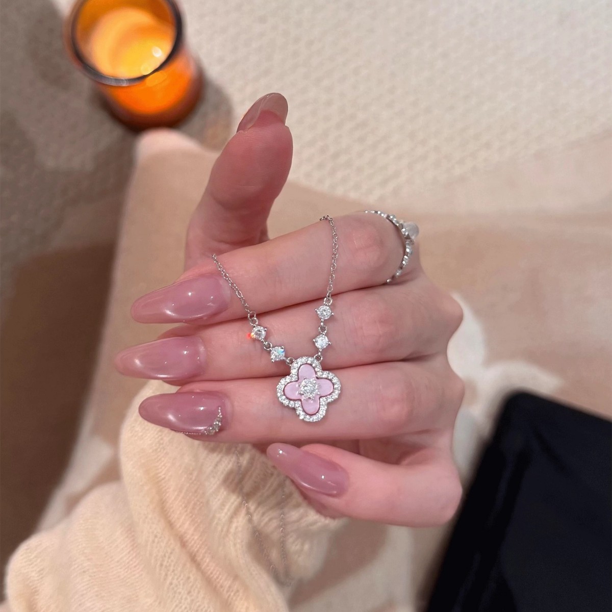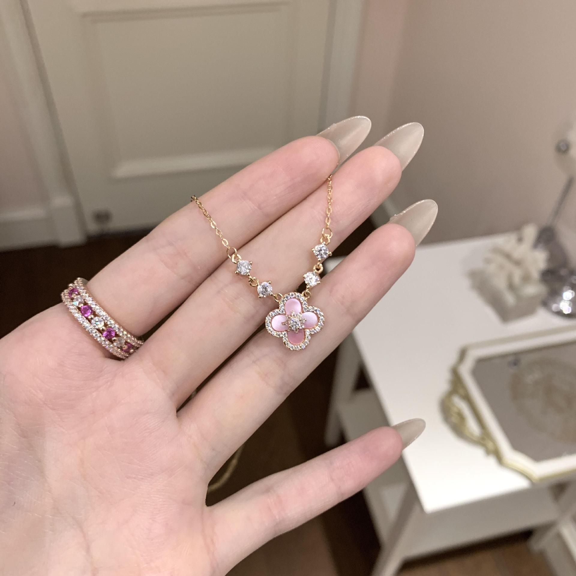ピンクの四つ葉のクローバーネックレスレディースファッションニッチライトラグジュアリーデザイン鎖骨チェーンパーソナライズされたハイエンドトレンディネックレス