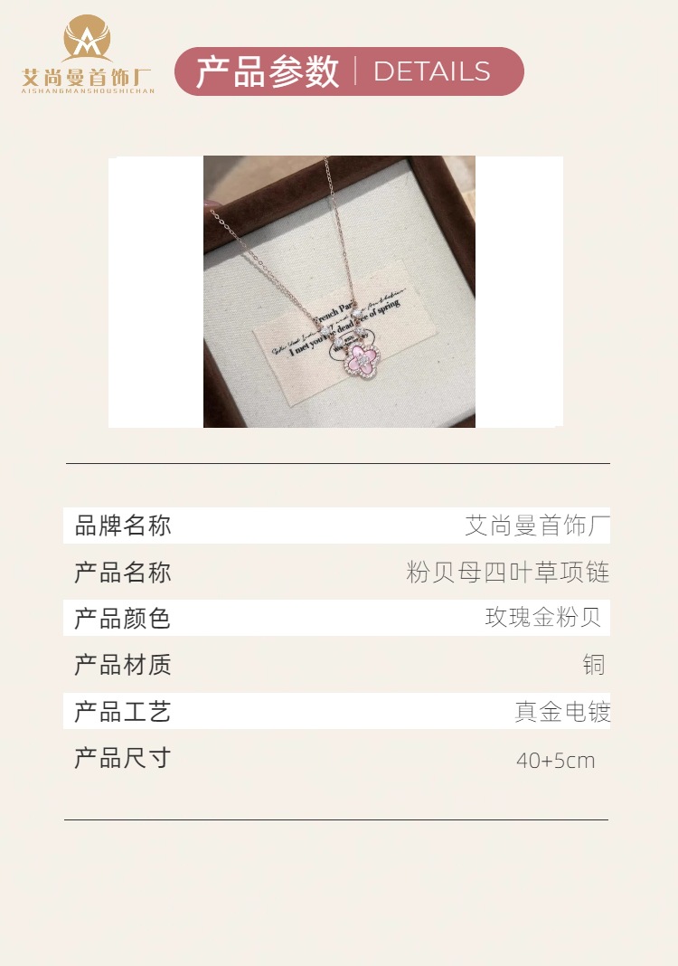「Qimeng Tianying」ヴィンテージ中古桜ピンクマザーオブパール四つ葉のクローバーネックレスレディースライト高級鎖骨チェーン卸売