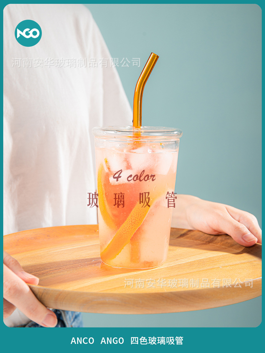 高弸硅水杯玻璃吸管水杯弯曲食品级耐高温玻璃果汁奶茶咖啡搅拌棒