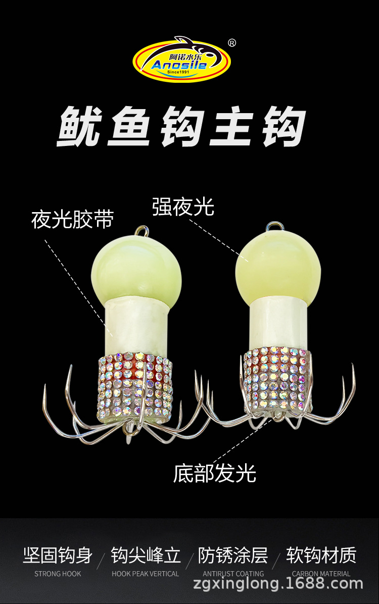 アノ水楽イカフック八帯フック六爪夜光付きタコフックイカイカは鉛の頭を引っ張ってフック代を代行します。
