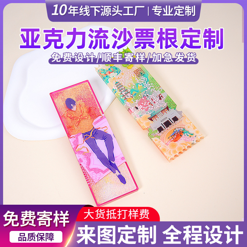 亚克力流沙票根定制明星动漫二次元周边小礼品物料立牌透卡摆件