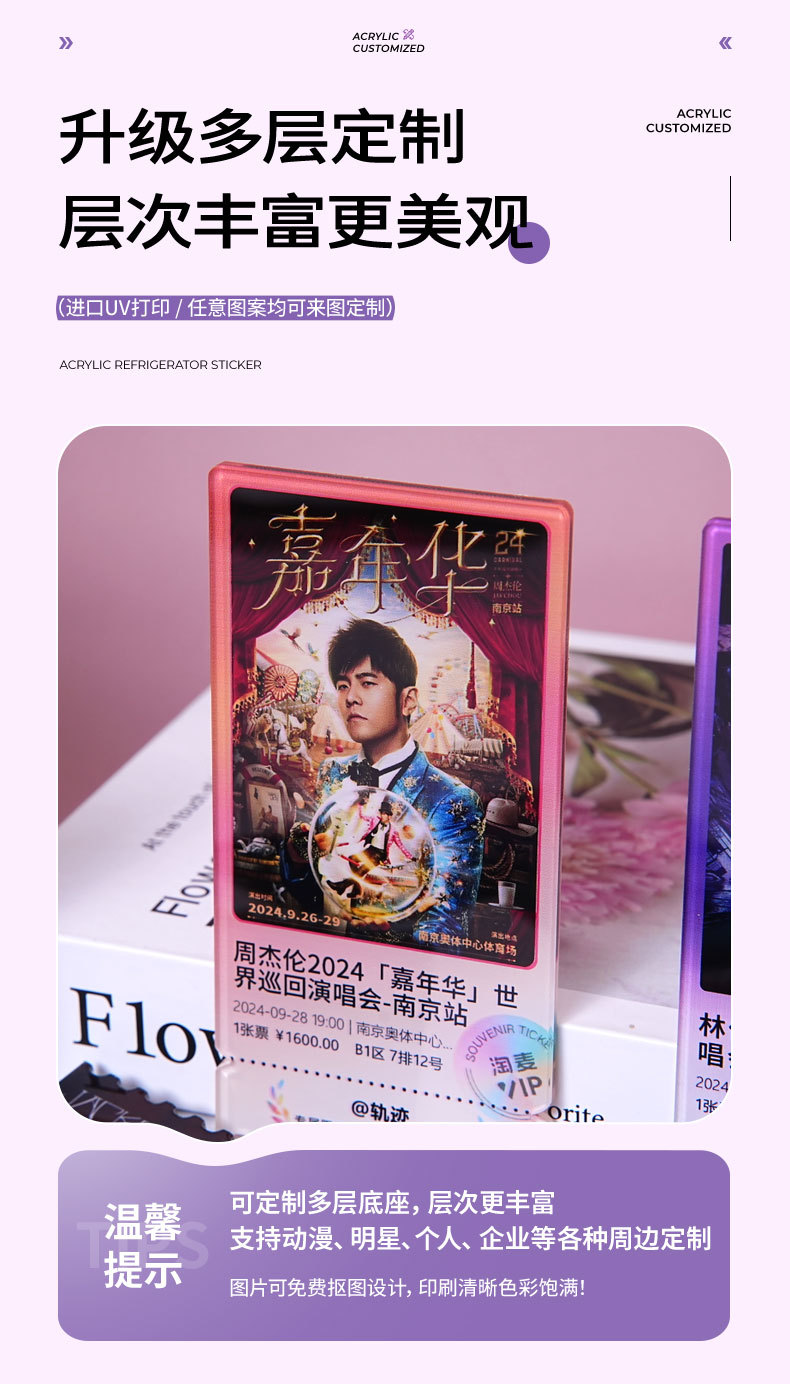 演唱会门票亚克力冰箱贴定制创意礼物明星周边照片纪念品票根磁贴