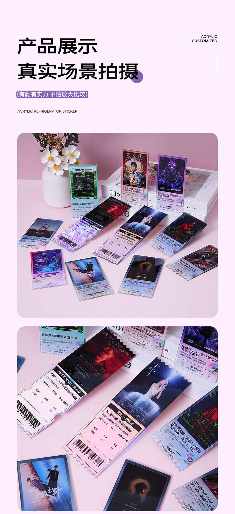 カスタマイズされたセレブコンサート周辺チケット半券ブックマーク装飾アクリル冷蔵庫マグネットスタンド学生卒業記念品