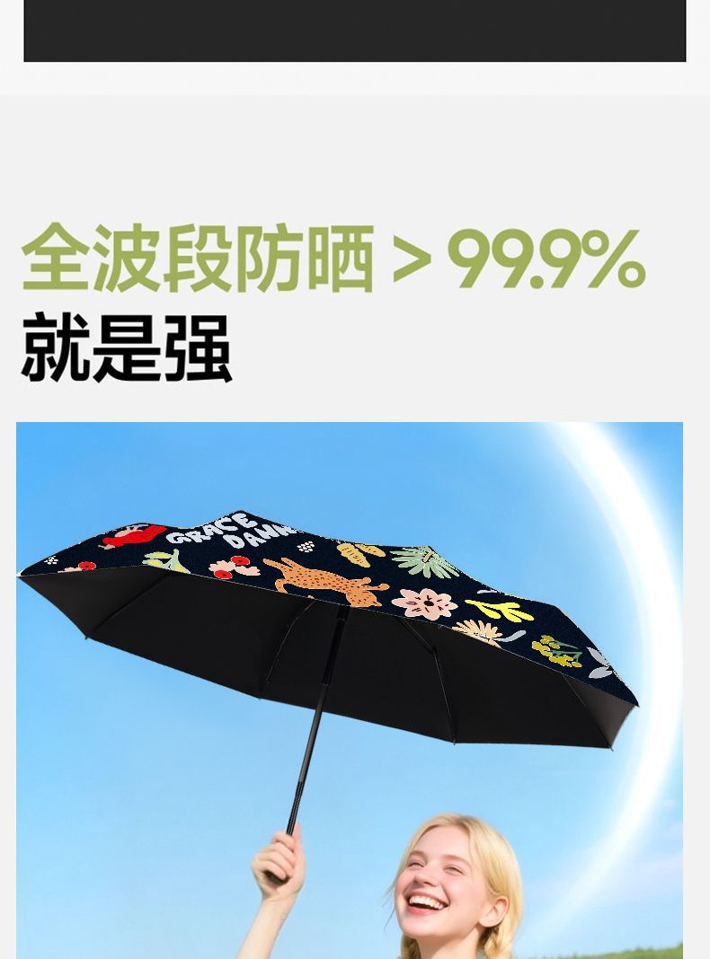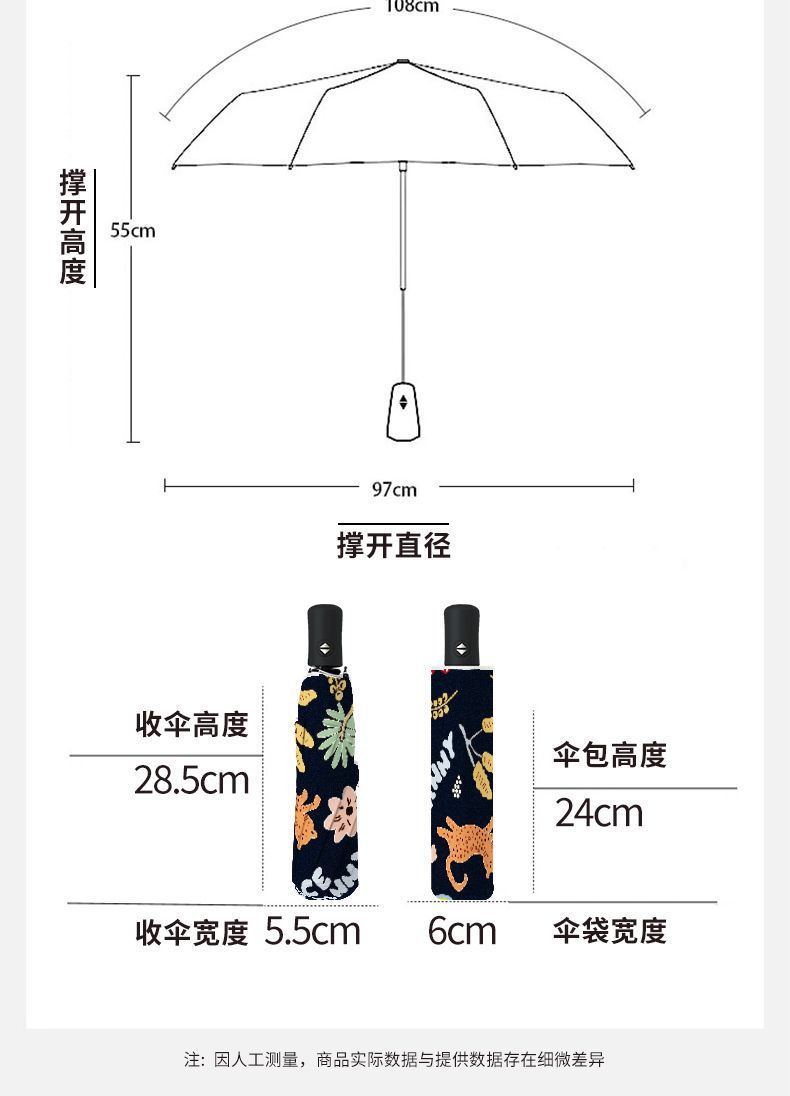 子供っぽい森の日焼け止めと紫外線防止傘、女性用、晴雨兼用、全自動折りたたみ、コンパクトでポータブルなサンシェード