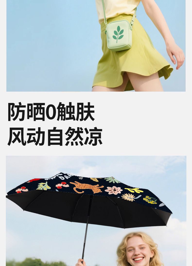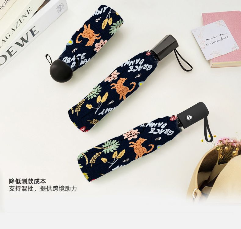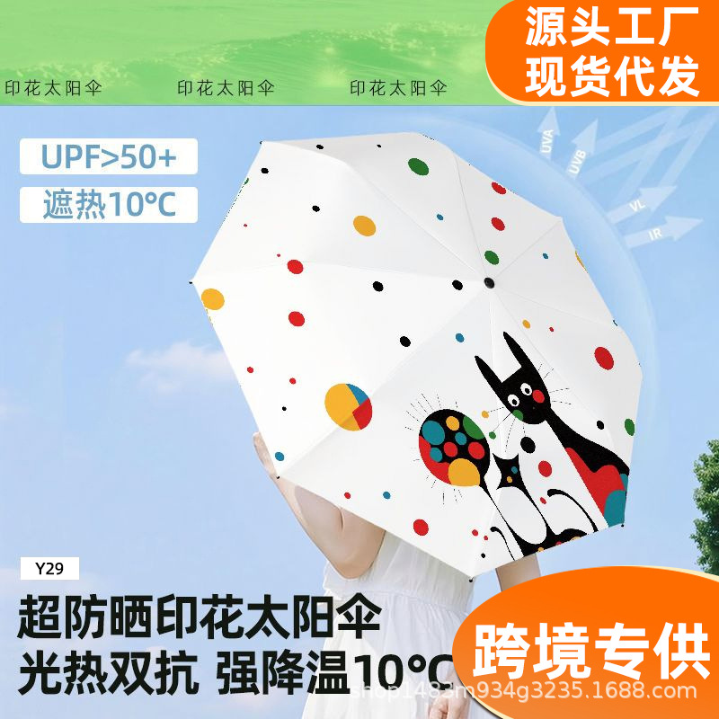 艺术喵咪防晒防紫外线雨伞女晴雨两用全自动折叠便携遮阳伞碎花