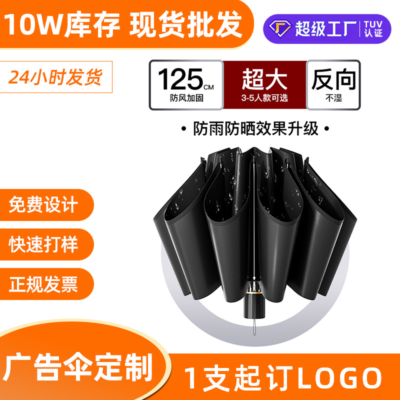 全自動折りたたみ傘、強化・厚手・大型、晴雨兼用、黒色UVカット傘、広告ロゴ印刷可能、卸売