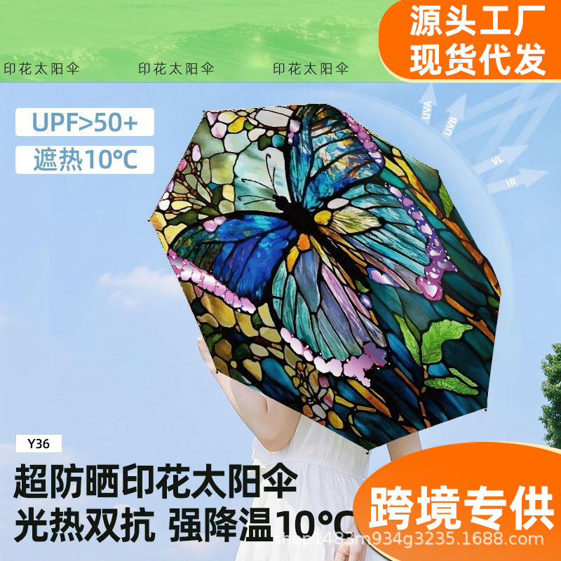 跨境全自动雨伞批发折叠便携晴雨两用黑胶防晒防紫外线遮阳太阳伞