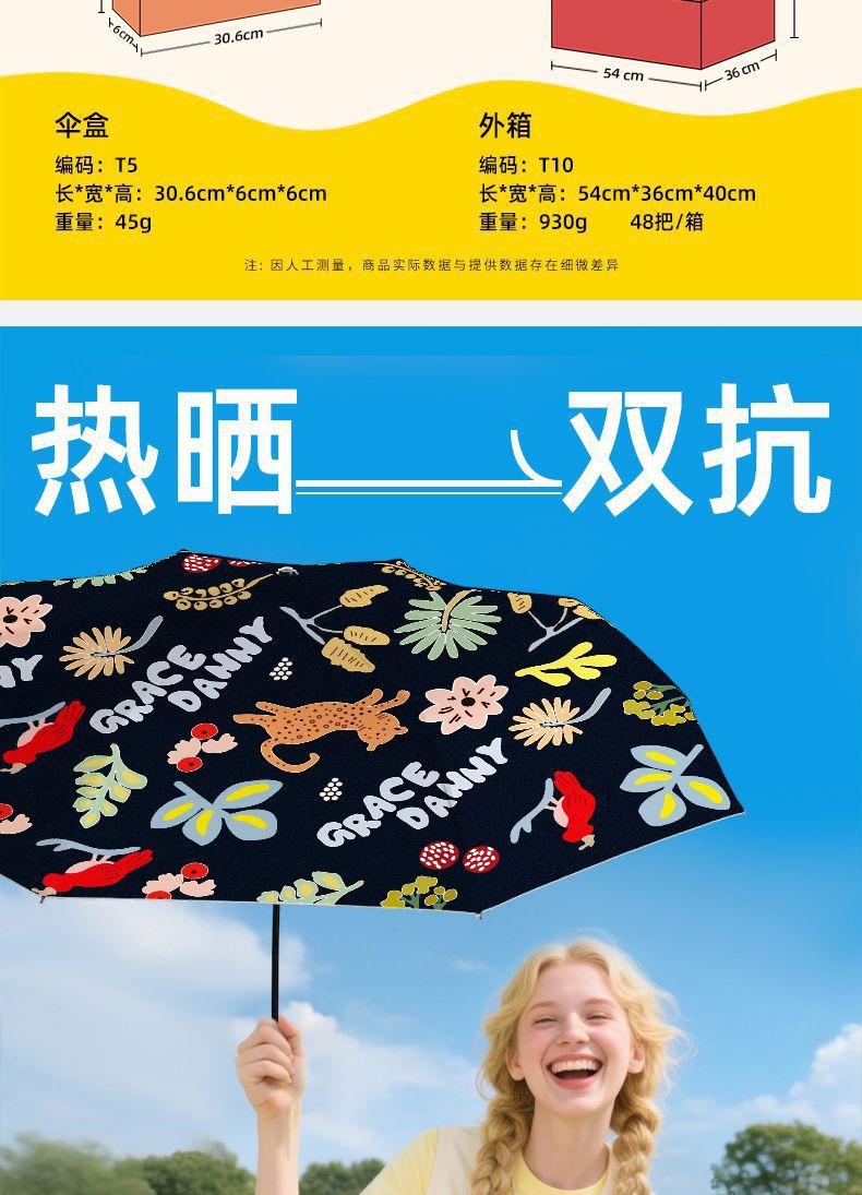 16骨彩胶太阳伞清新晴雨两用防晒遮阳伞三折双人折叠大号雨伞