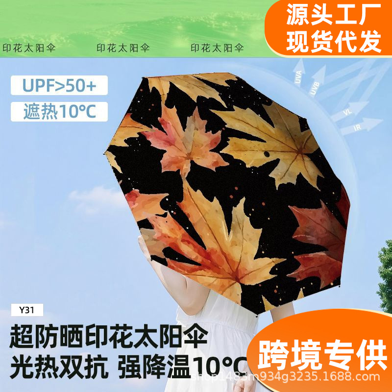 枫叶时尚防晒防紫外线雨伞女晴雨两用全自动折叠小巧便携遮阳伞