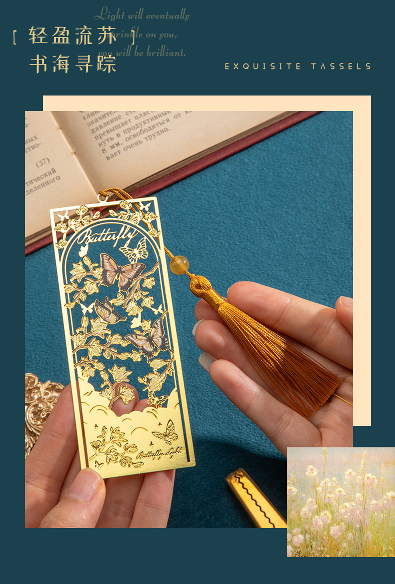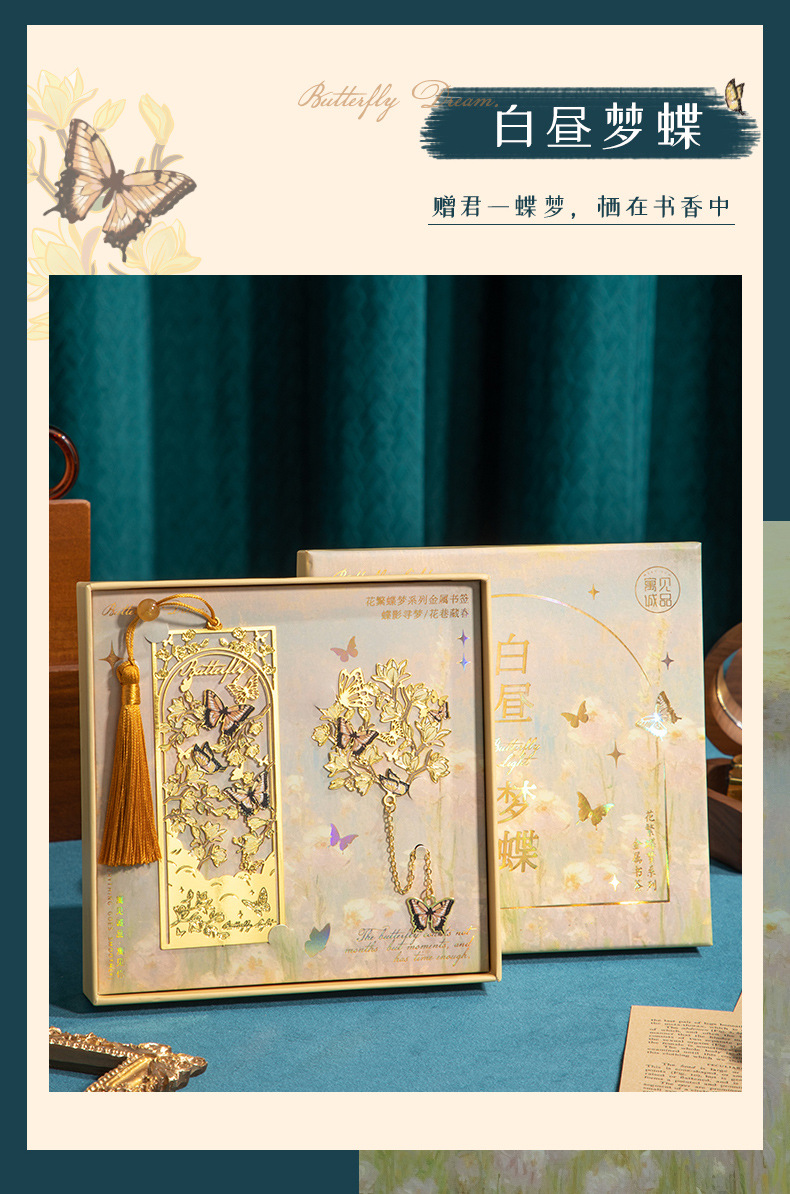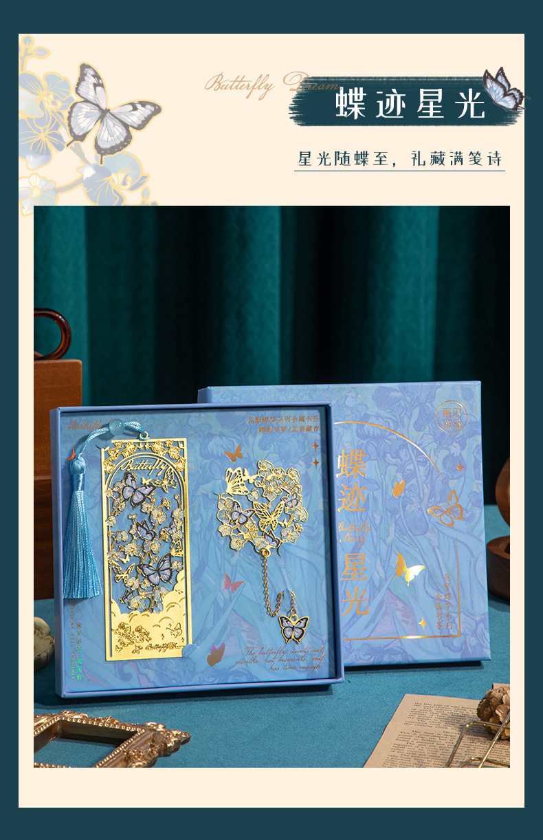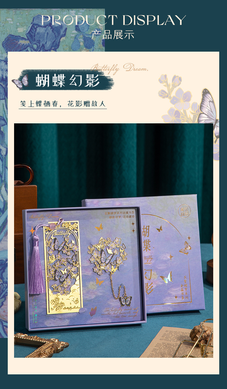 花と蝶の夢シリーズ金属タッセルブックマークギフトボックス中国風学生クリエイティブギフトセットブックマークギフトボックス