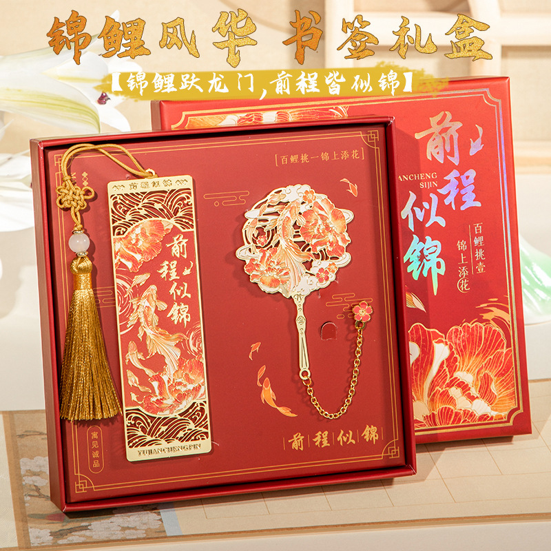 鯉風華シリーズ金属タッセルブックマークギフトボックス中国風学生クリエイティブ教師の日セットブックマークギフトボックス
