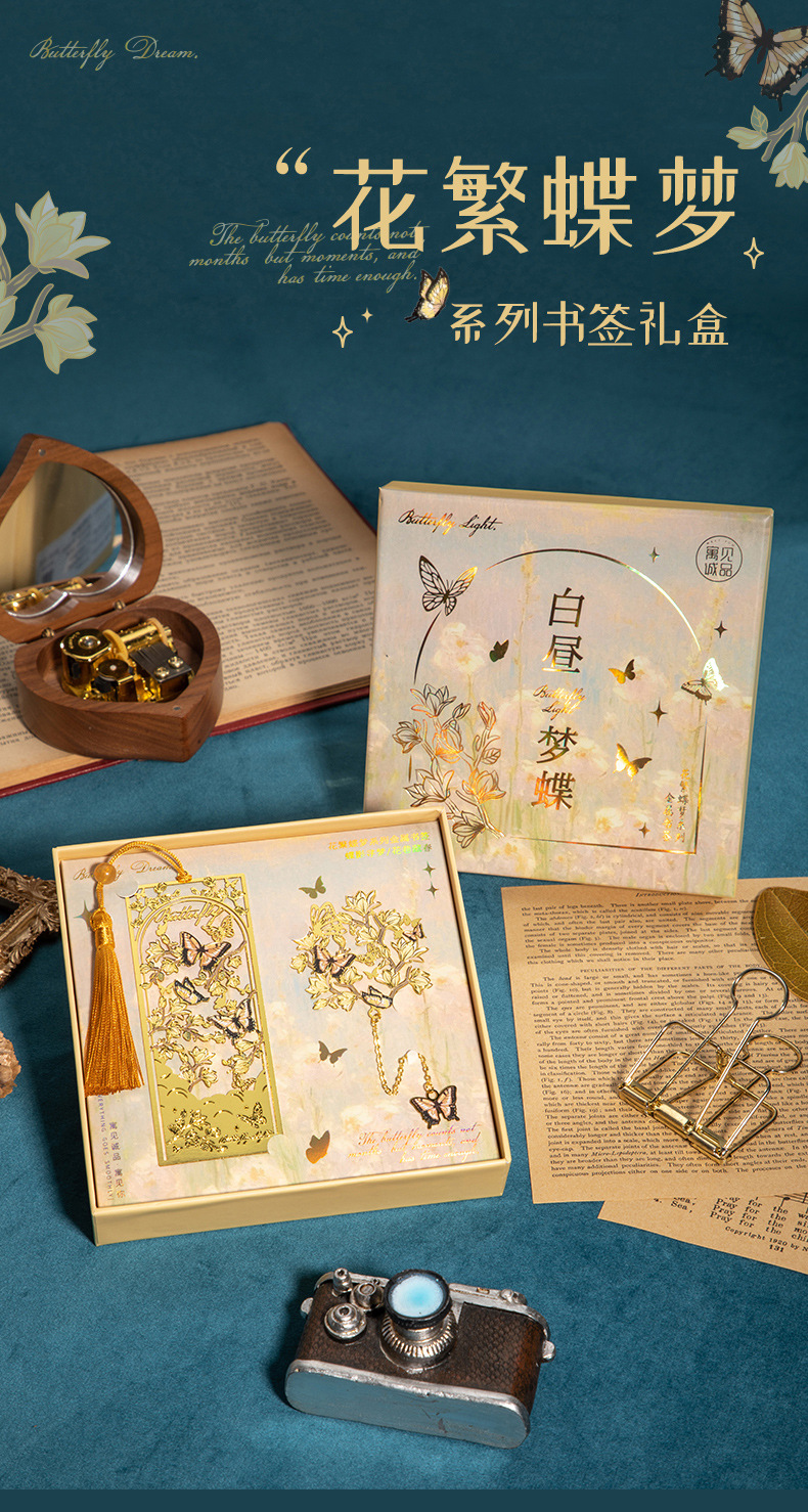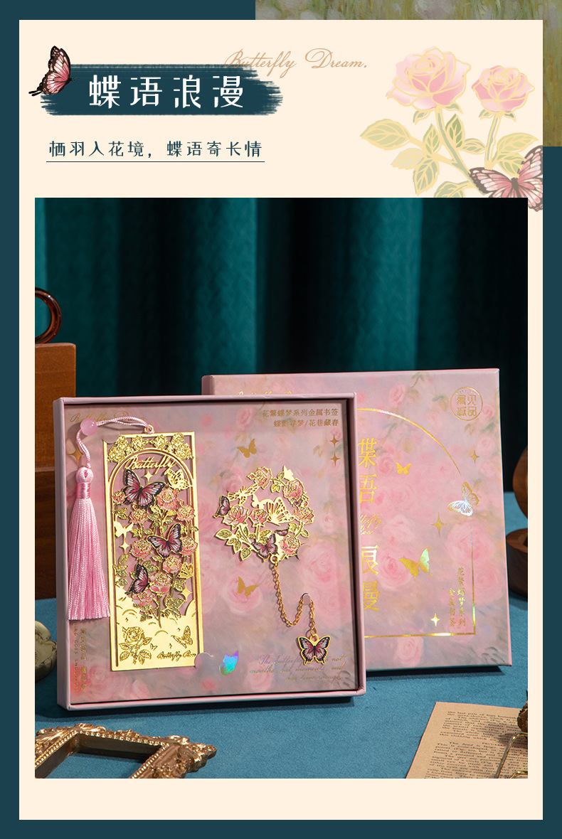 花と蝶の夢のしおりギフトボックスクリエイティブクリエイティブホリデーギフトお土産ハイエンドメタルタッセルしおりギフトボックス