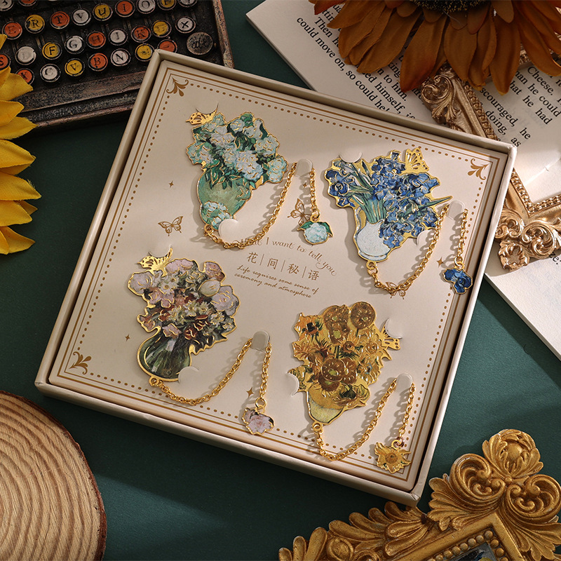花の秘密シリーズ ブックマーク ギフトボックスセット ロマンチックな花の形をした学生読書クリップ ブックマーク 4 組み合わせパック