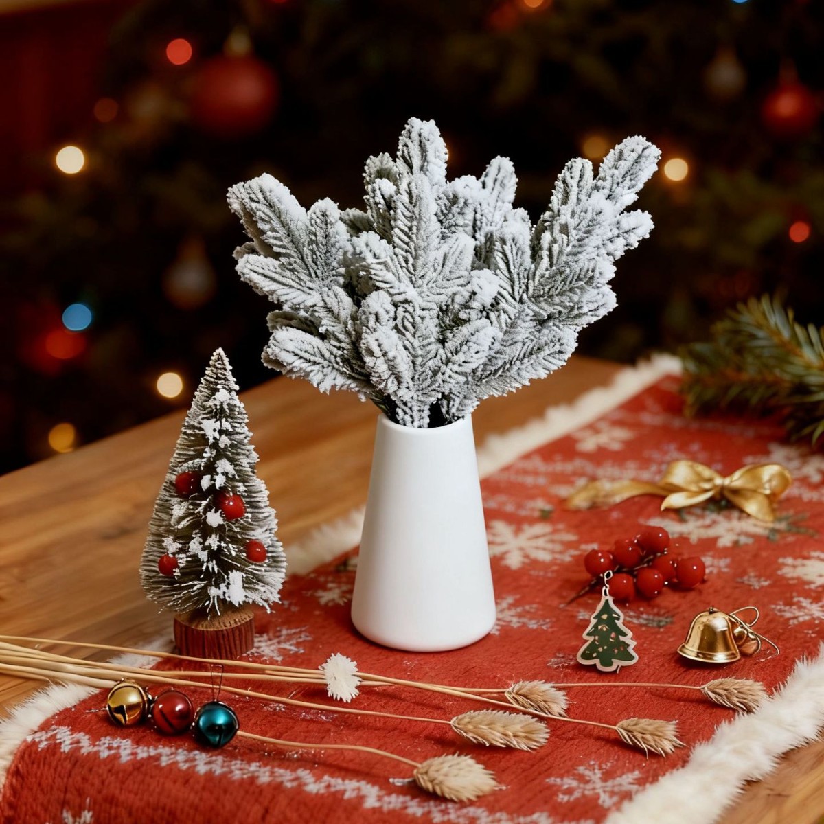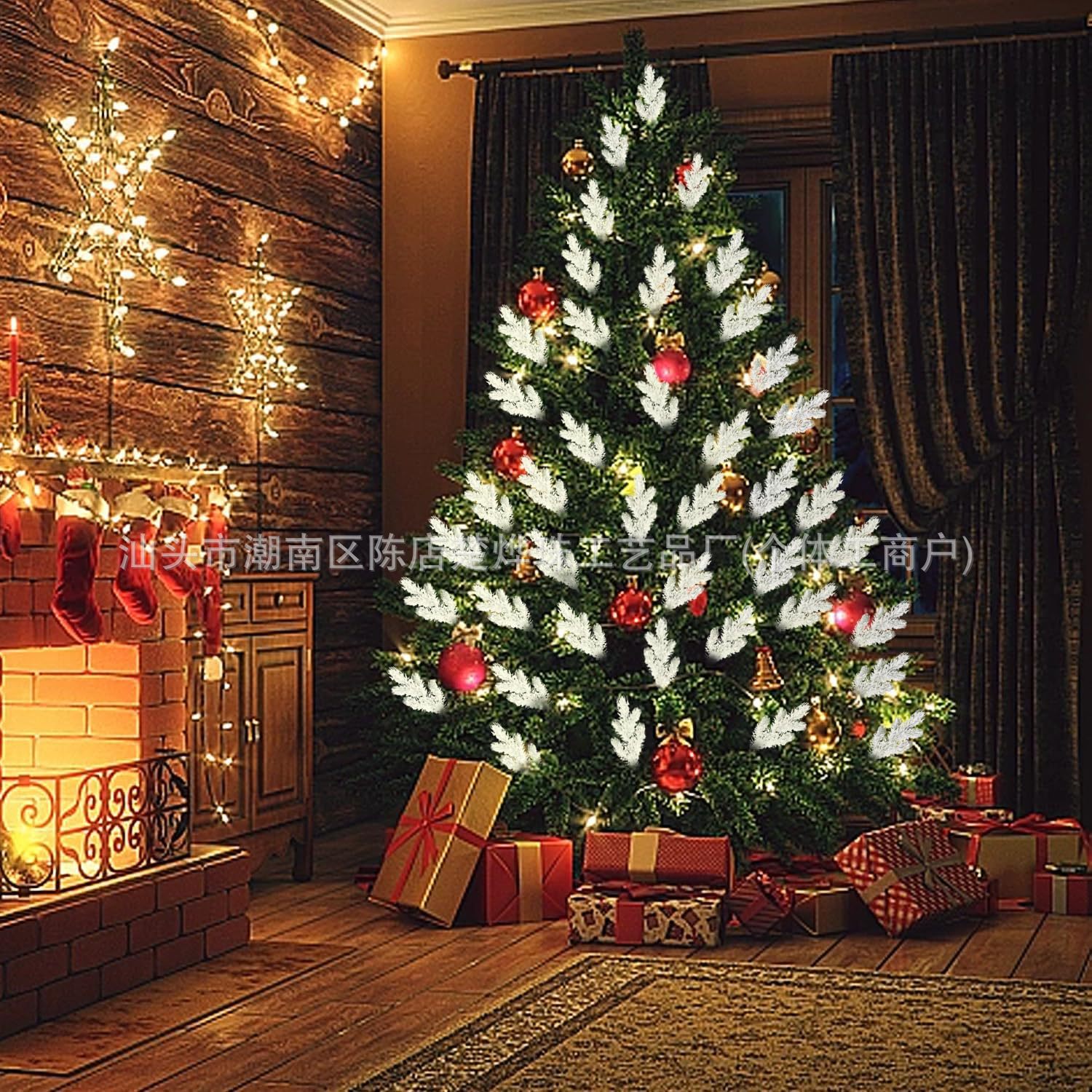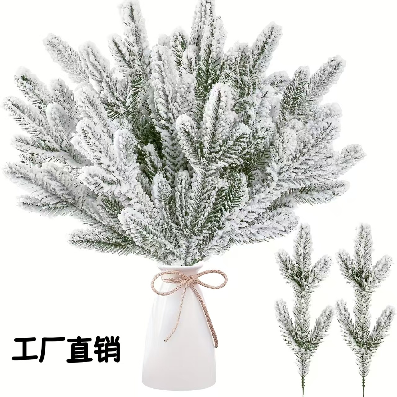 跨境亚马逊仿真雪花松针圣诞装饰圣诞树DIY插花配件实力工厂直销