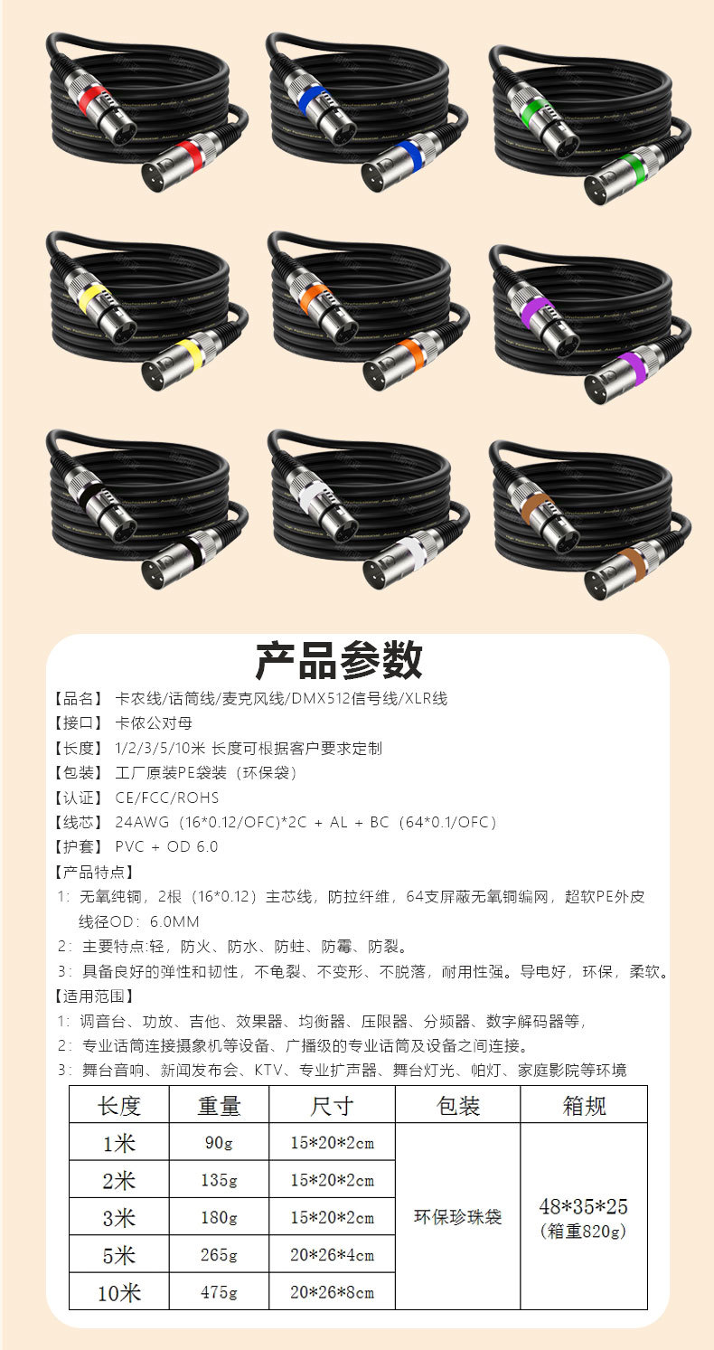 メーカークロスボーダーxl r公対母カードケーブルDMX512信号線マイク接続線カード農卸売り