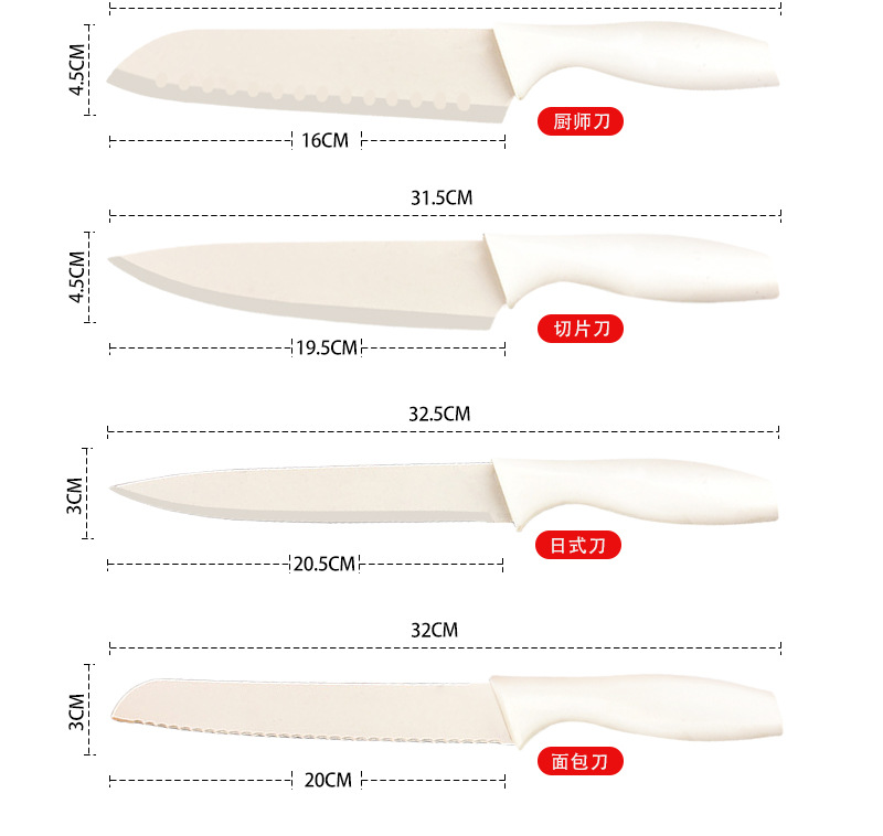 国境を越えた人気のステンレス鋼包丁キッチンスライスナイフインフルーツナイフ家庭用肉切りナイフ6点セット