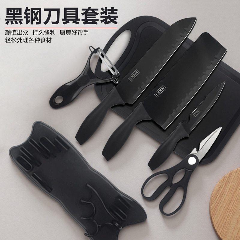 ステンレス鋼ナイフセット、ブラックスチール包丁、家庭用フルーツナイフ、まな板、キッチンスライスナイフ、鋭利なシェフナイフのフルセット