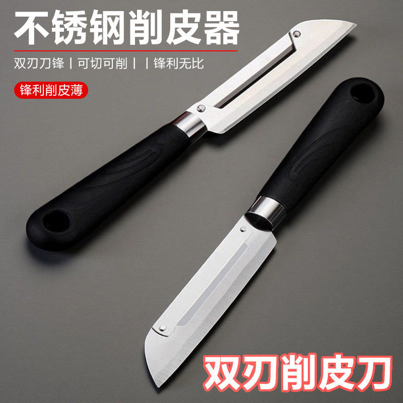 プラスチックの黒い柄のステンレスの両用の削り刀の野菜の果物は皮をむいて刀を削ります。