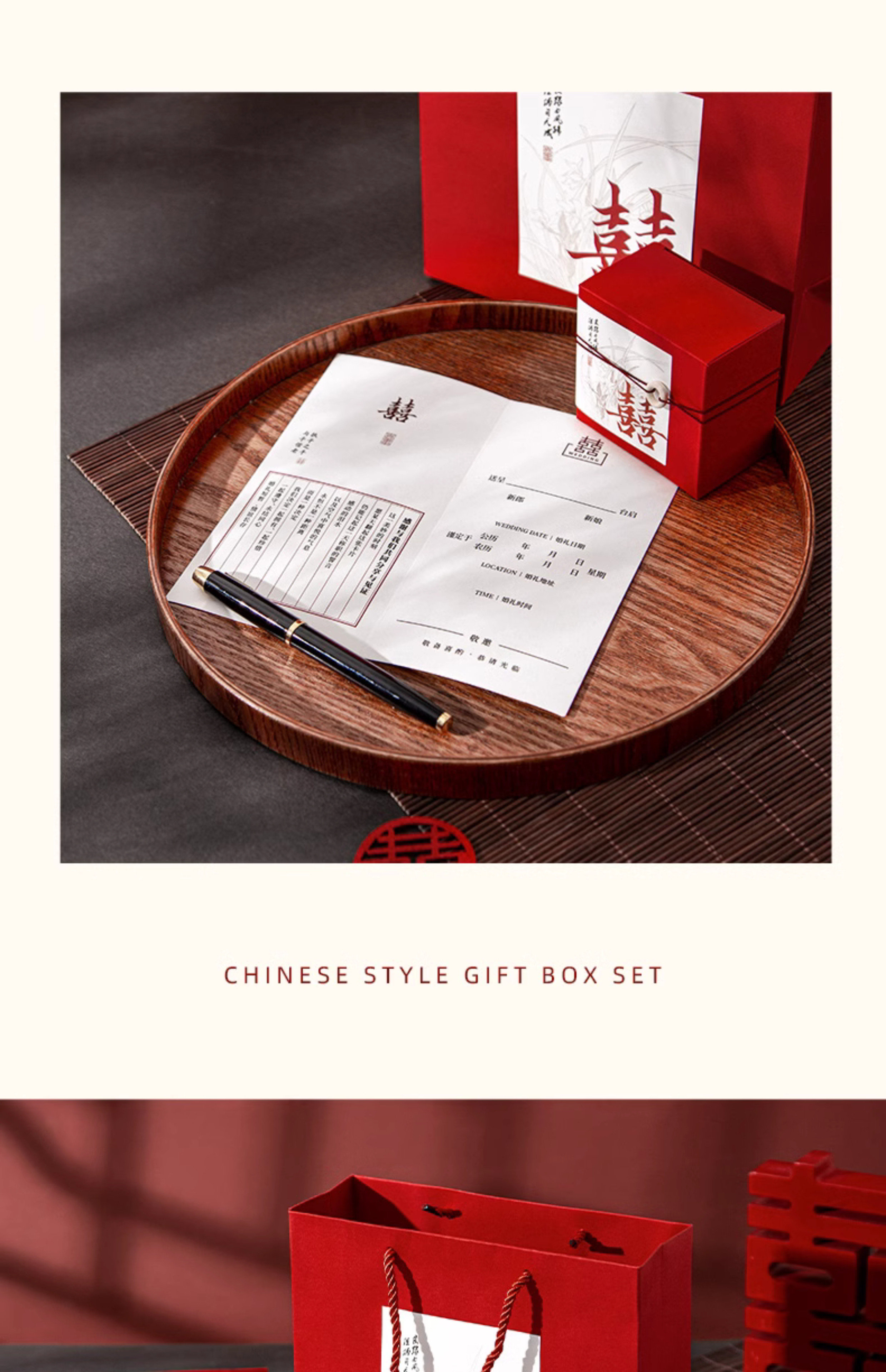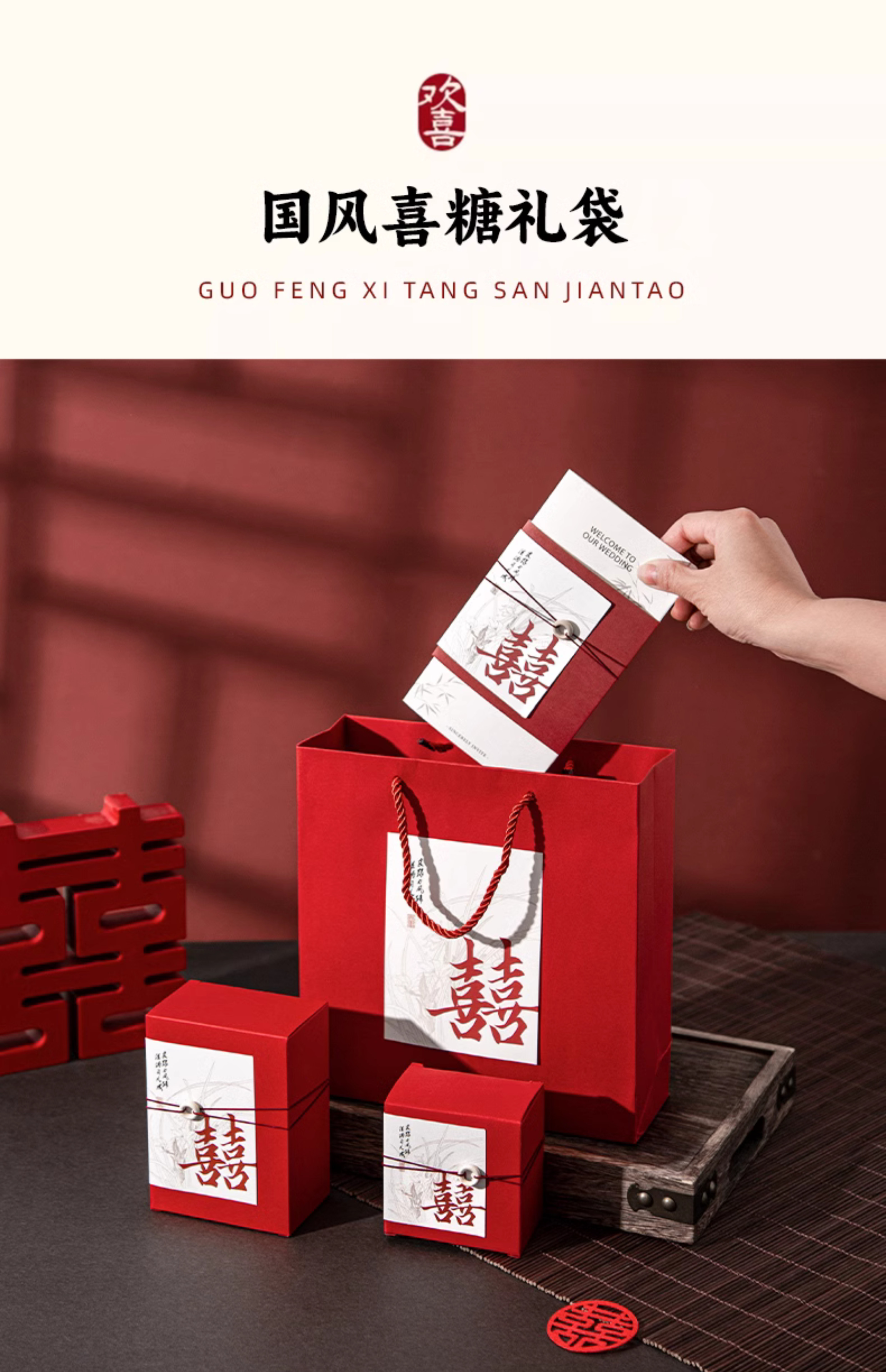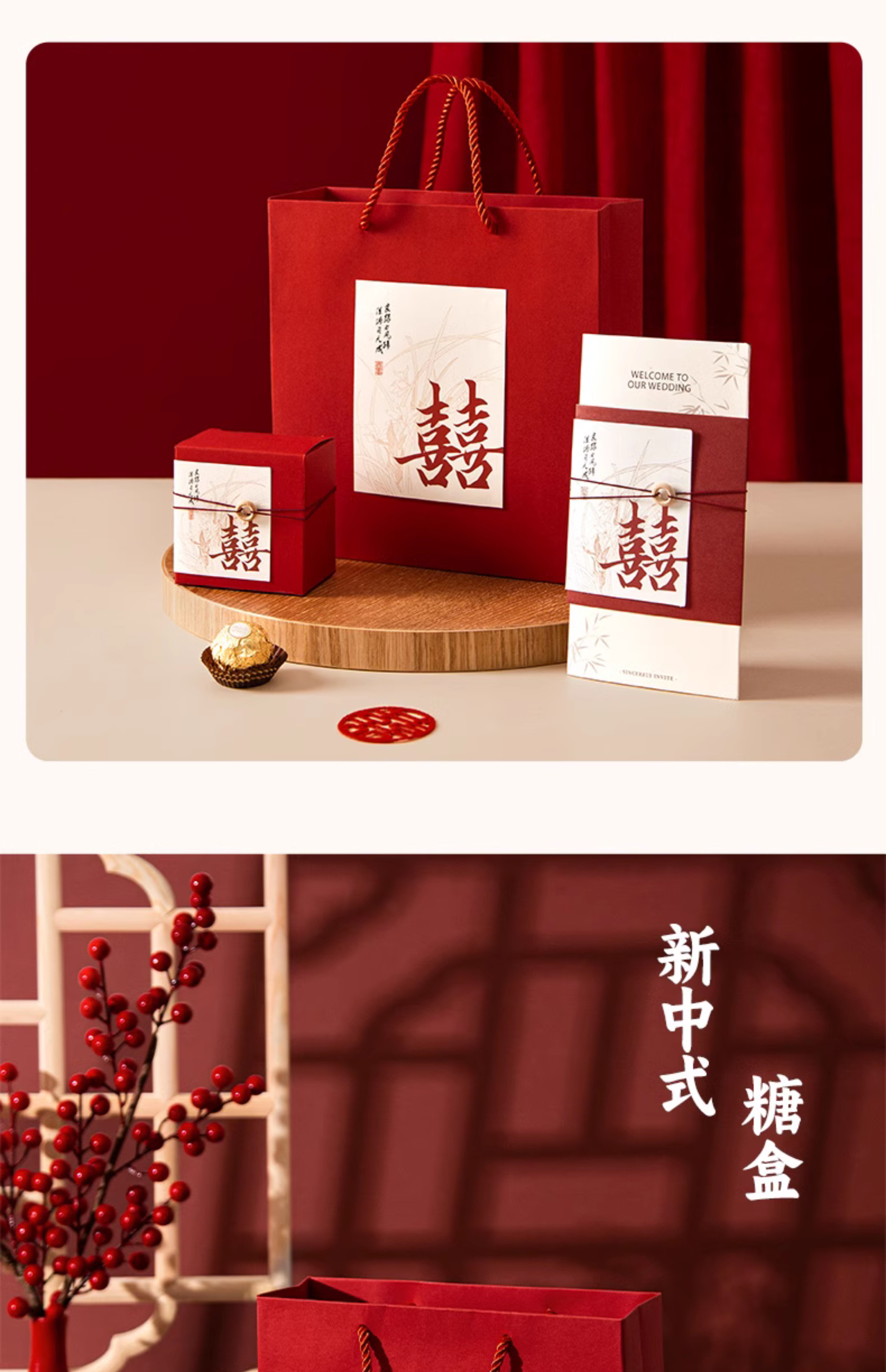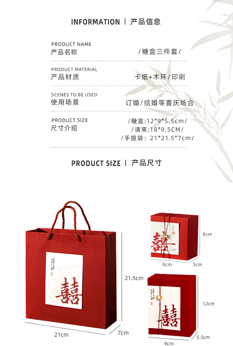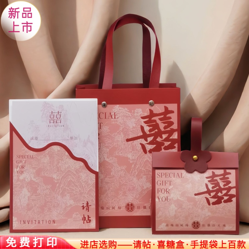 请帖喜糖盒三件套打印手提袋国风礼盒装请柬喜帖创意订婚