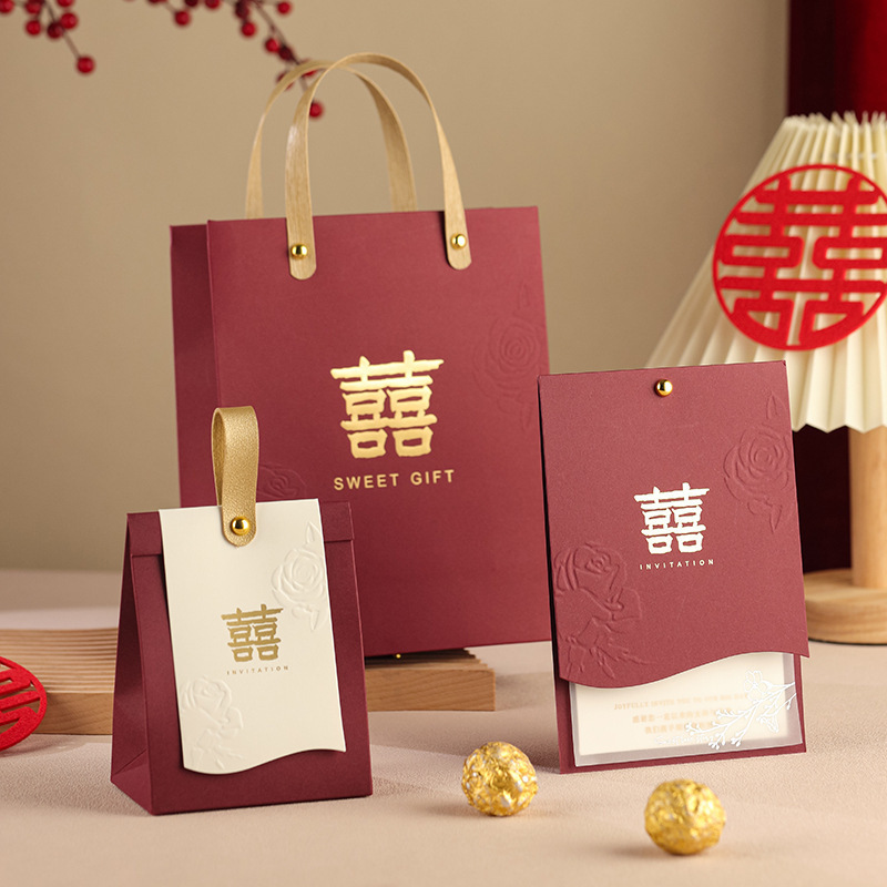 结婚请柬喜帖喜糖盒子婚礼邀请函三件套大气送日子婚宴手提袋礼盒