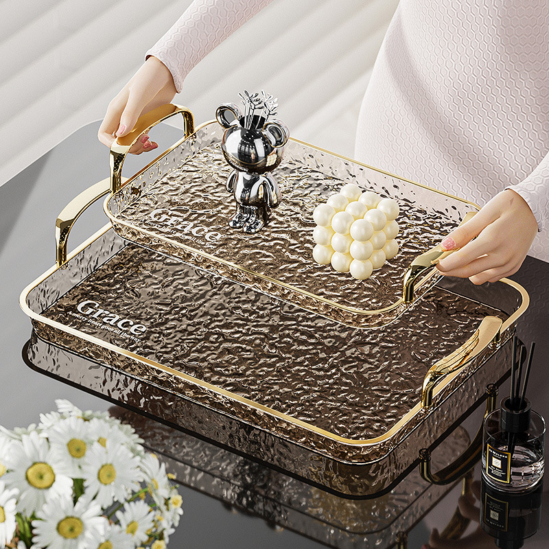 ライトラグジュアリースタイルのダイニングトレイ、ハンドル付き透明、パーティーホームレストラン、ハイエンドトレイ、落下防止ウォーターカップ収納トレイ