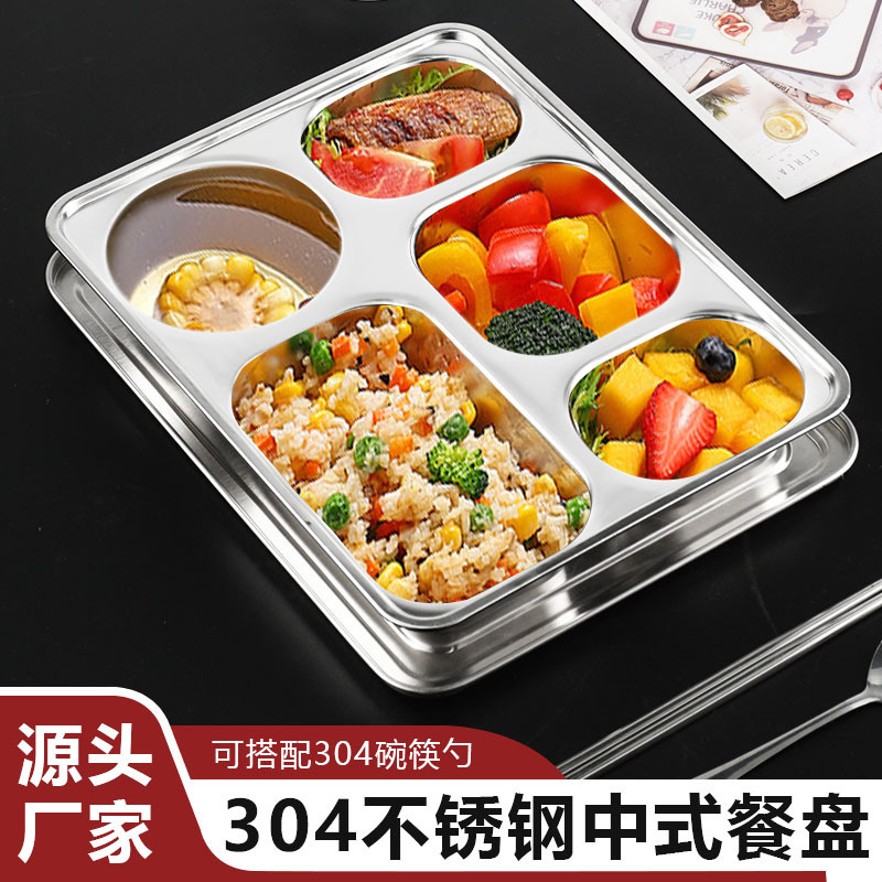 304 ステンレス鋼のディナープレート食堂厚みのあるランチボックス蓋付きランチボックス 4 コンパートメント 5 コンパートメント正方形のファーストフードプレート