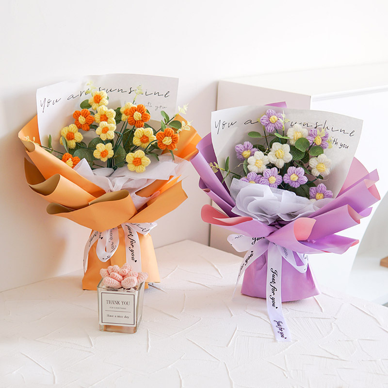 Z 手作りウールニットローズプリザーブドフラワーブーケ完成品教師の日中国のバレンタインデーの恋人女性 L